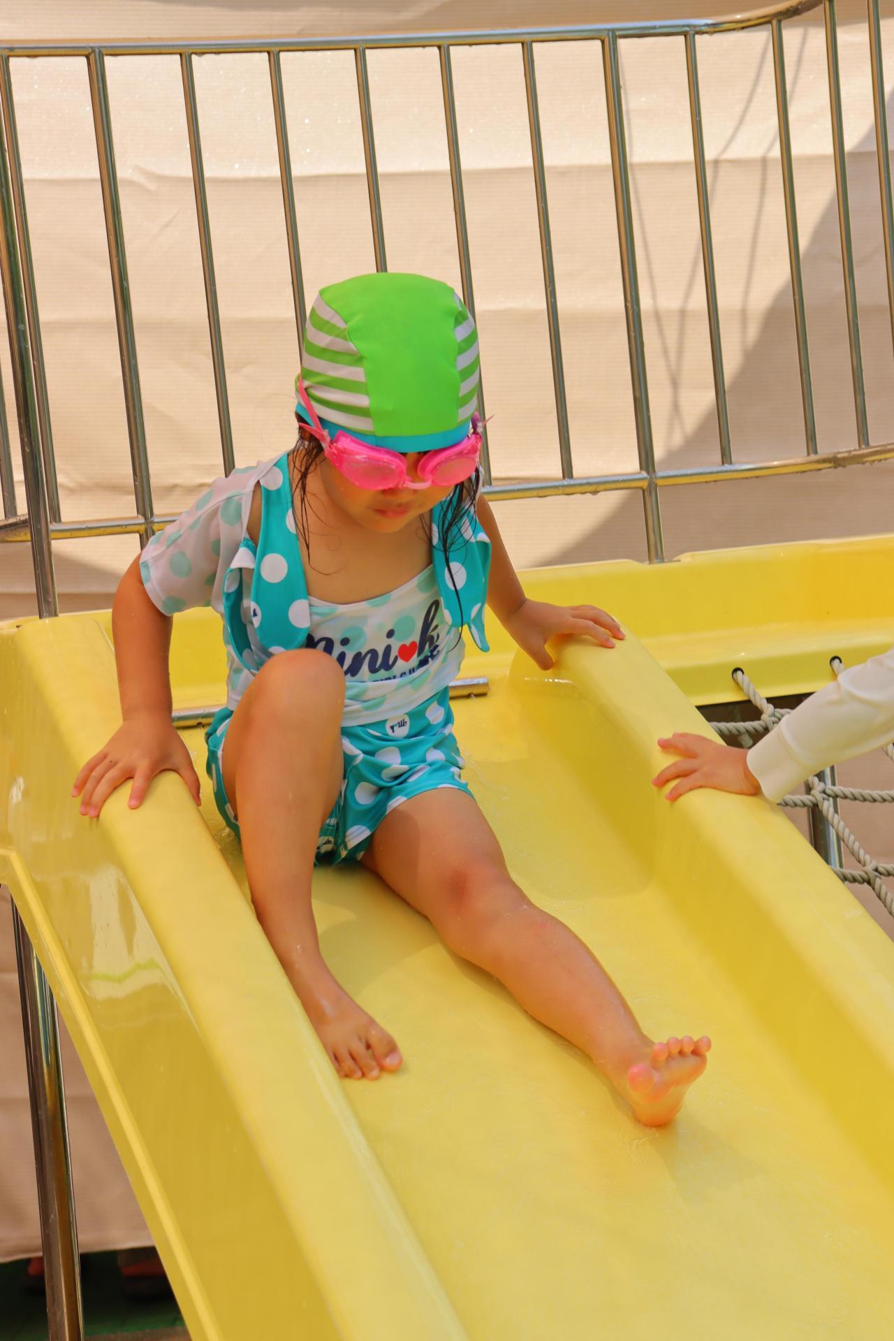 今日は朝、急に雨が降ってきて入れないかな~と思いきや、とってもいいお天気になったので急いで水着に着替えて、ぺんぎんさん→ねずみさん→きりんさんの順番で入水しました✨