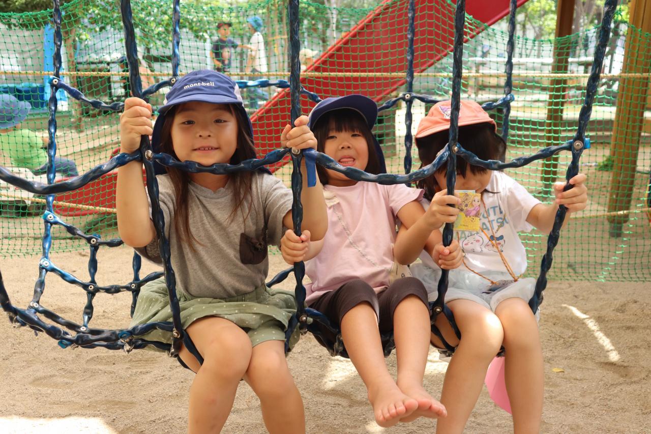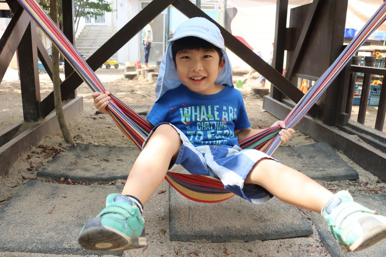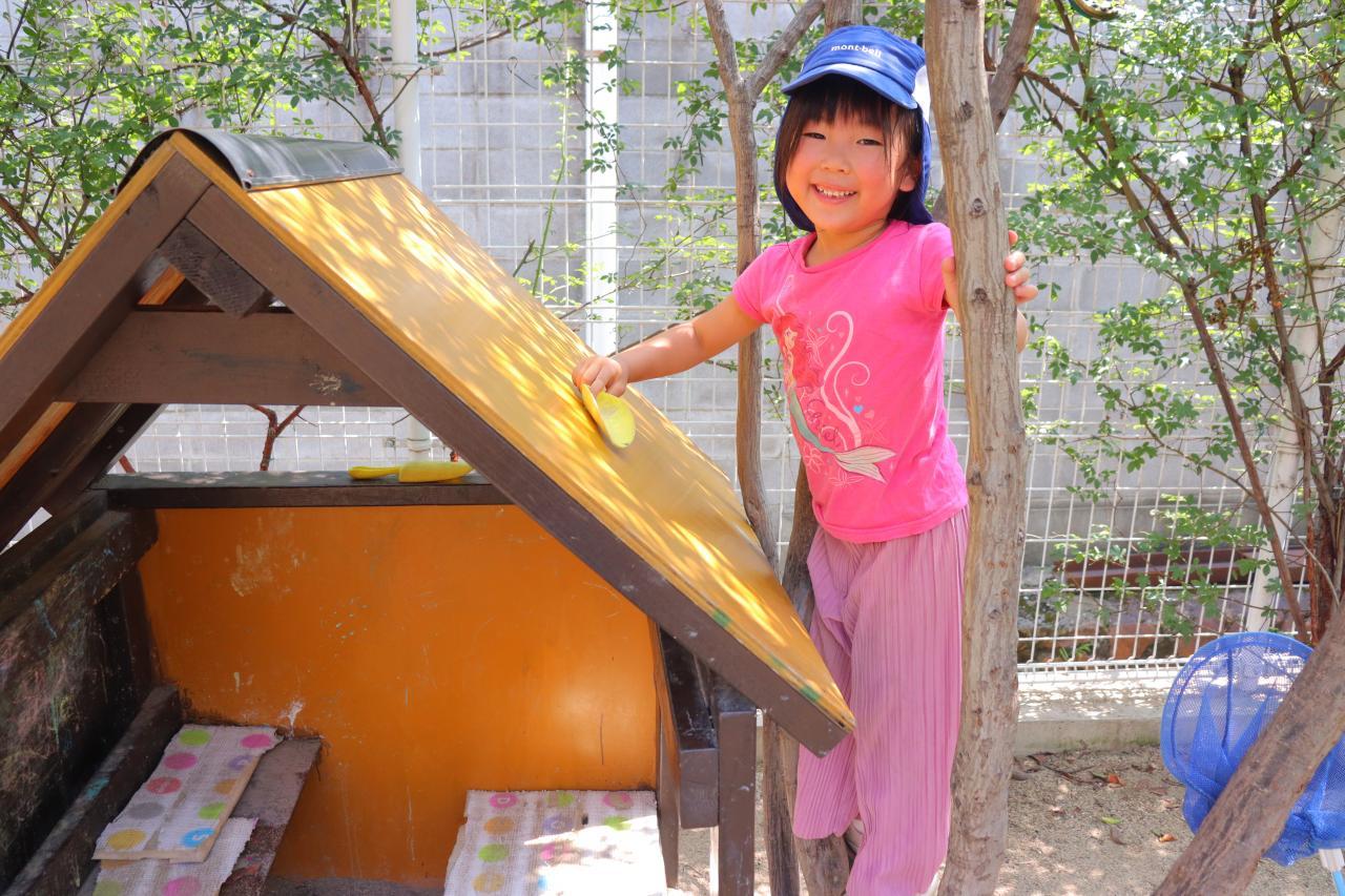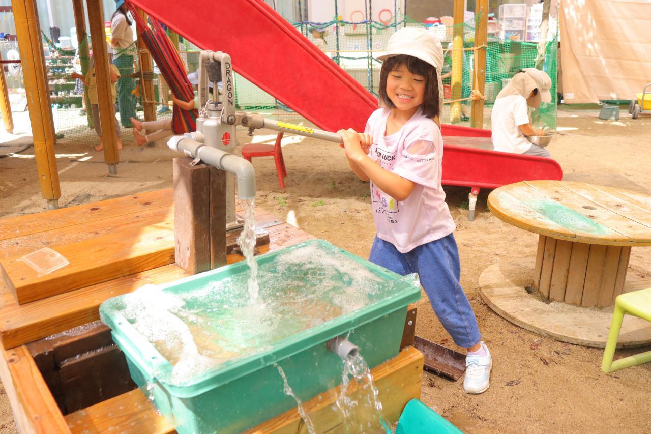 朝は少し雨がぱらついていましたが、園庭に出るころにはすっかりいいお天気で、お水遊びをしたり虫探しをしたりしてそれぞれ暑い中楽しんでいましたよ♪