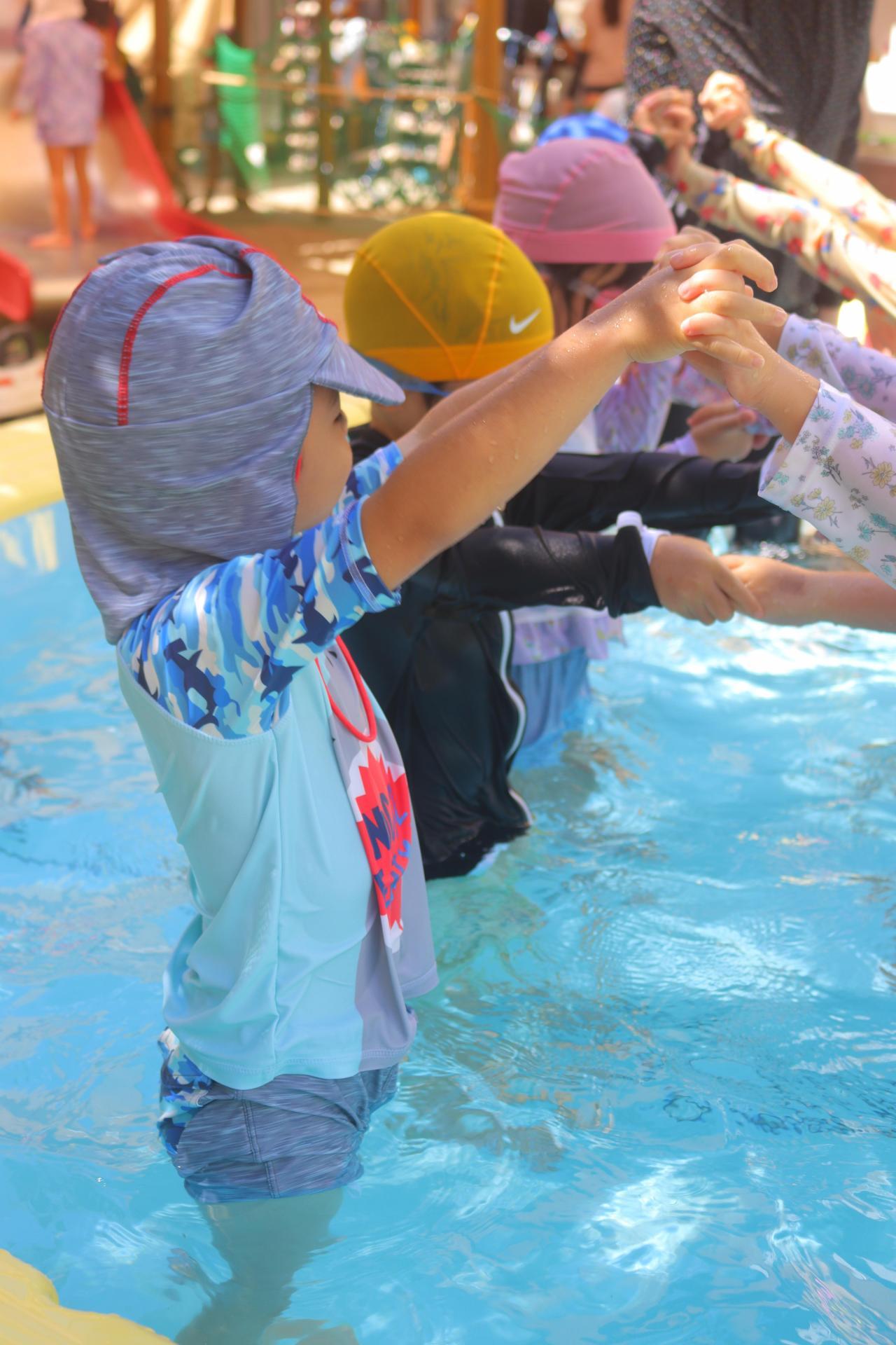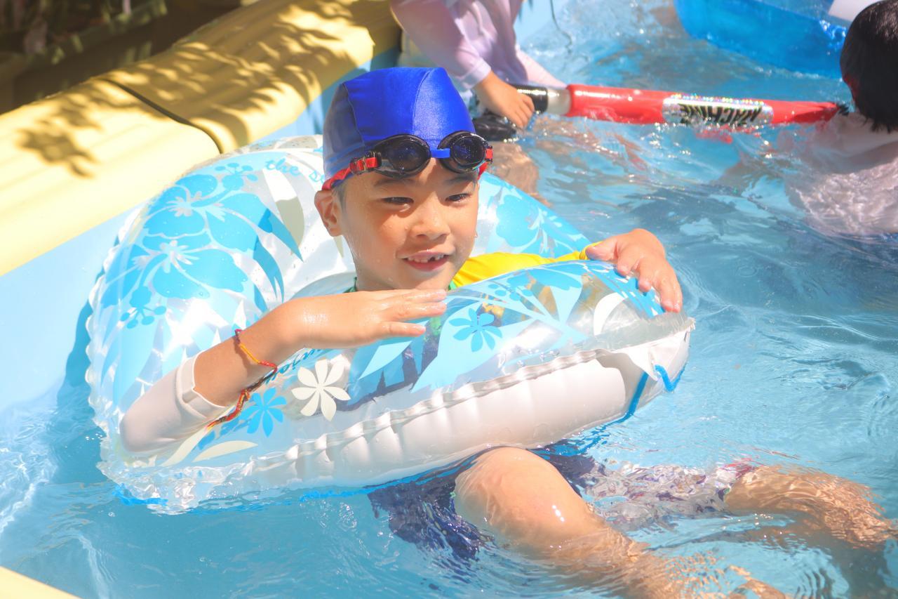ぷかぷか浮いたり、お友だちと浮き輪に入ったり、