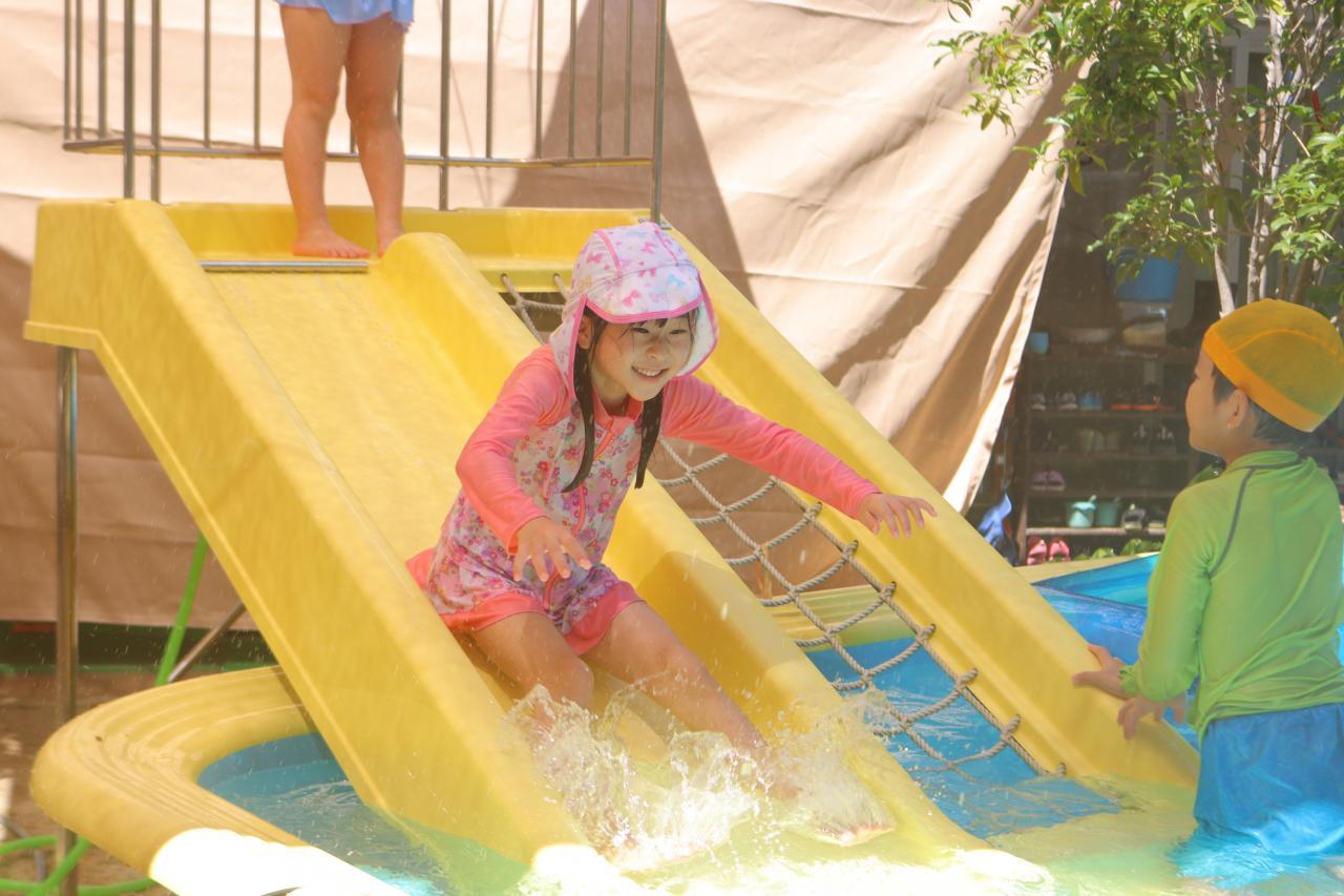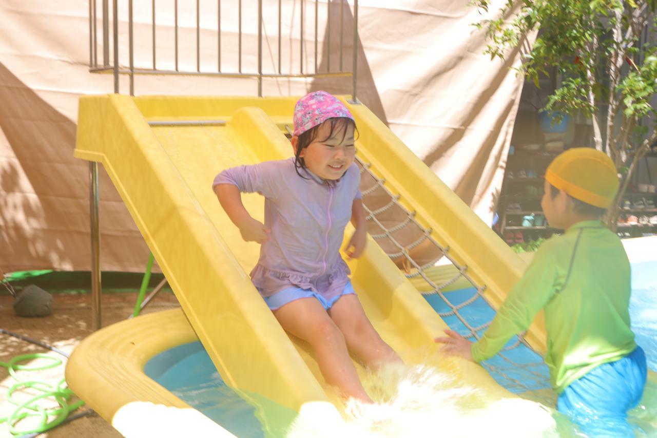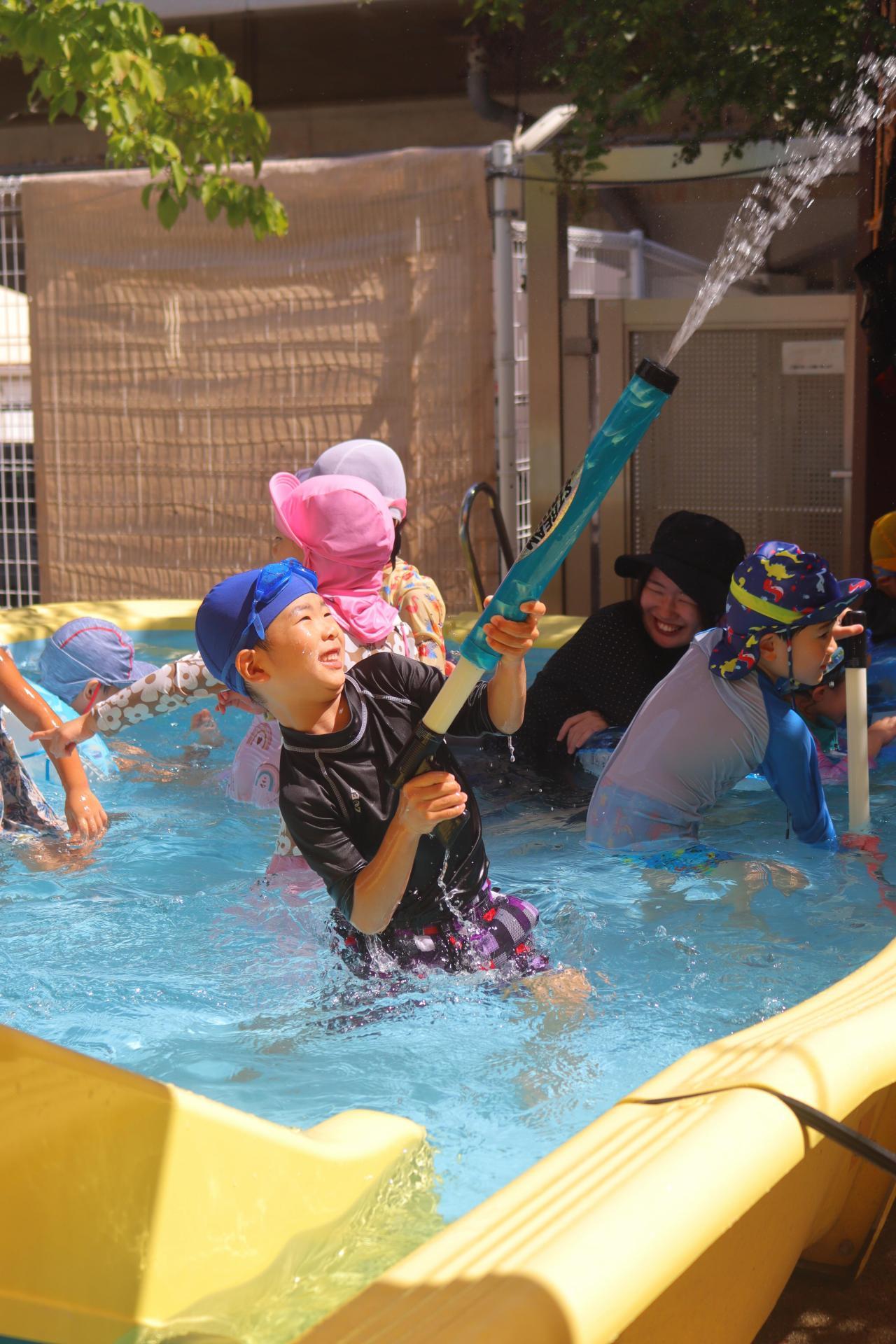 水鉄砲はお友だちと掛け合いっこしたり、真上に発射して水が落ちてくるのを楽しんでいましたよ✨