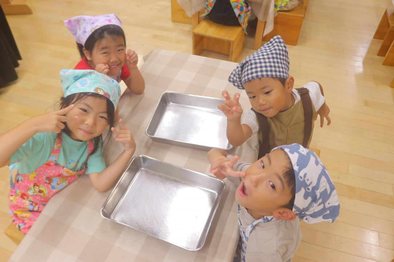 エプロンと三角巾を付けて、手を洗って準備万端✨