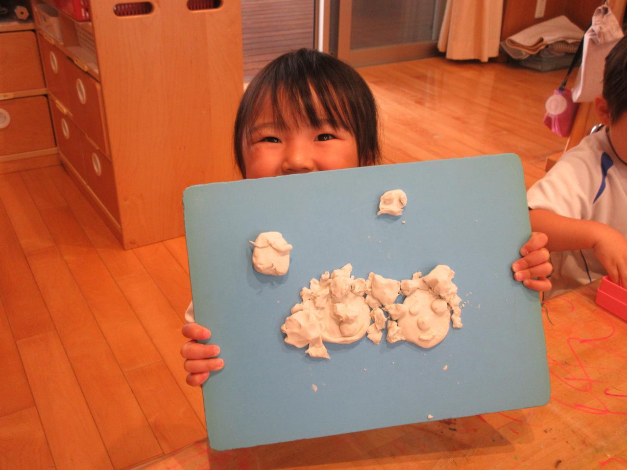 今日は、みんなで粘土あそびをしました。
