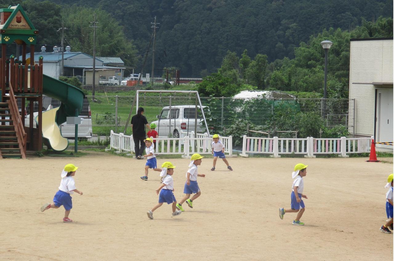 さくら組はECCのあと、園庭に出て全員でのかくれんぼやリレーを全力で楽しみました。