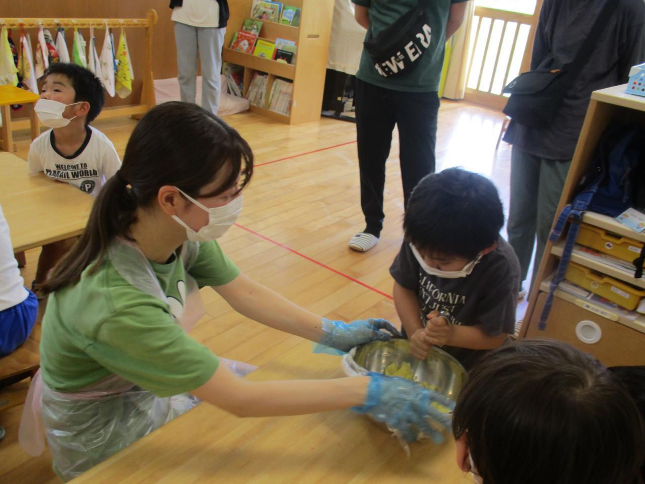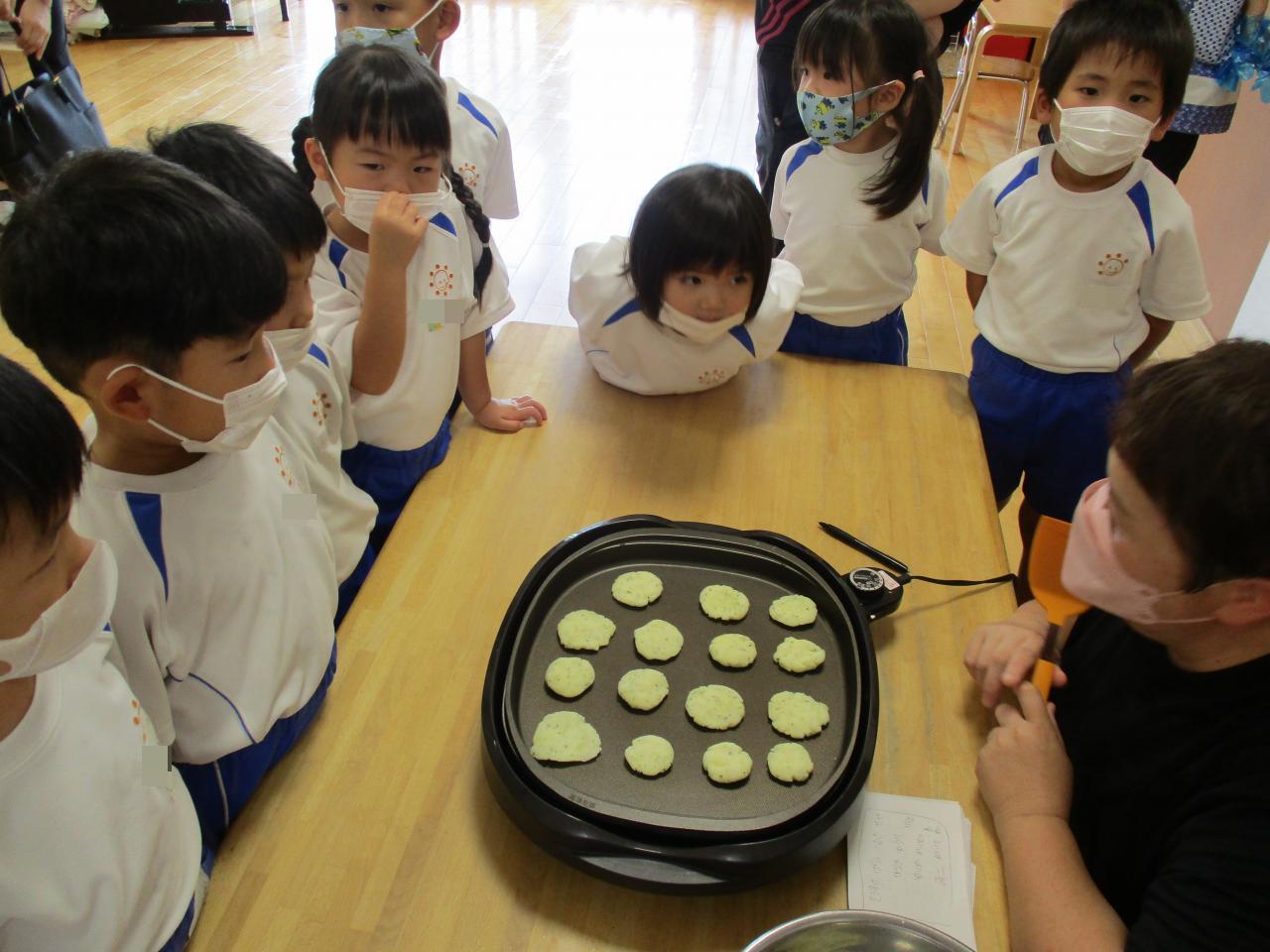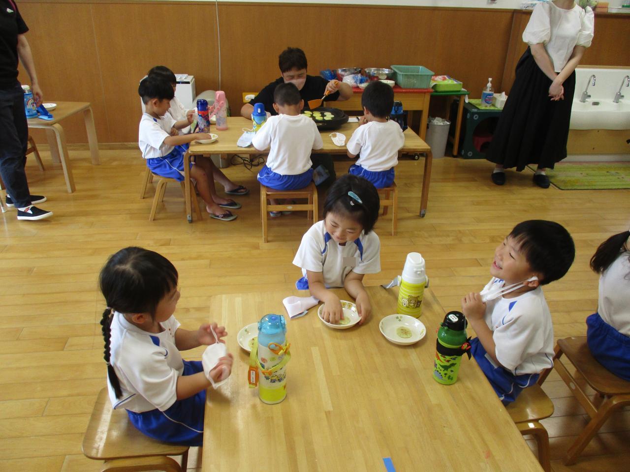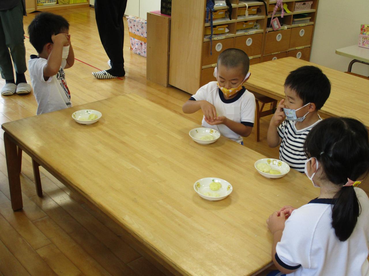 さくら組・ひまわり組はジャガイモで“いももち“のクッキング!!男爵いもとメークインで別々のお団子を作り、食べくらべをしました。「おいしそう~」と嬉しそうな表情の子どもたち。食べ比べてみてどうだったか、ぜひ子どもさんに聞いてみてくださいね😄