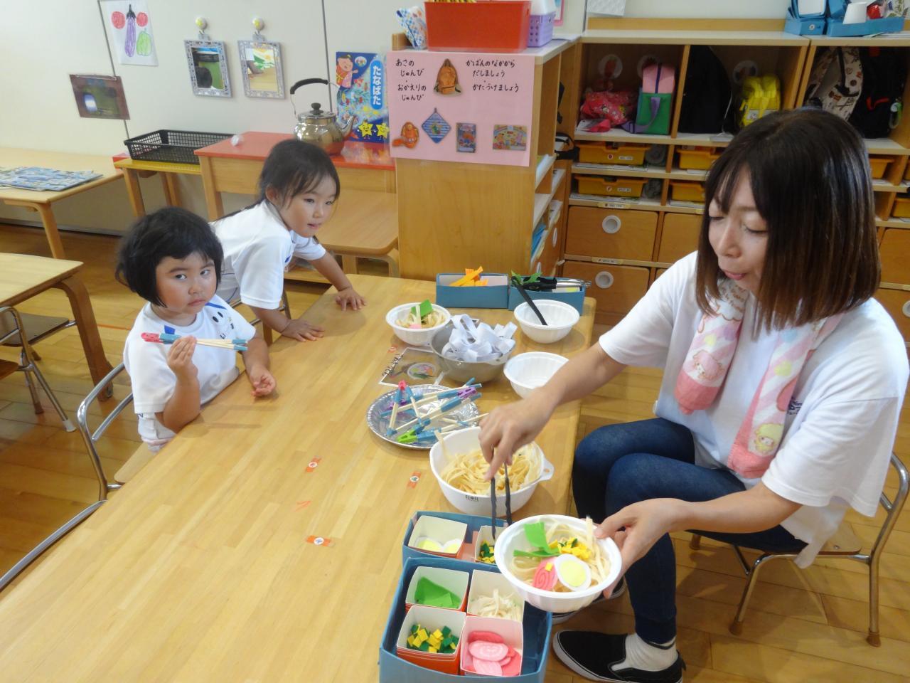 すみれ組・たんぽぽ組は室内遊びと外遊びをしました。お店屋さんごっこを楽しんだり音楽に合わせて動物さんになりきったりと楽しみました😄外では暑かったので、シャワーのトンネルを作ってもらうと、子どもたちは水しぶきに近づき、「きゃ~!!」と大喜びでした😆