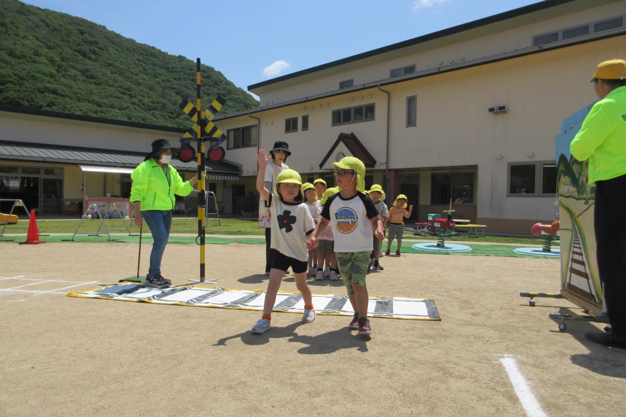横断歩道を渡るときの安全確認の仕方や、信号が点滅しているときに注意することなどを教えてもらいました。信号がない横断歩道も安全確認をして、子どもたちだけでしっかりと渡れるようになってきました。