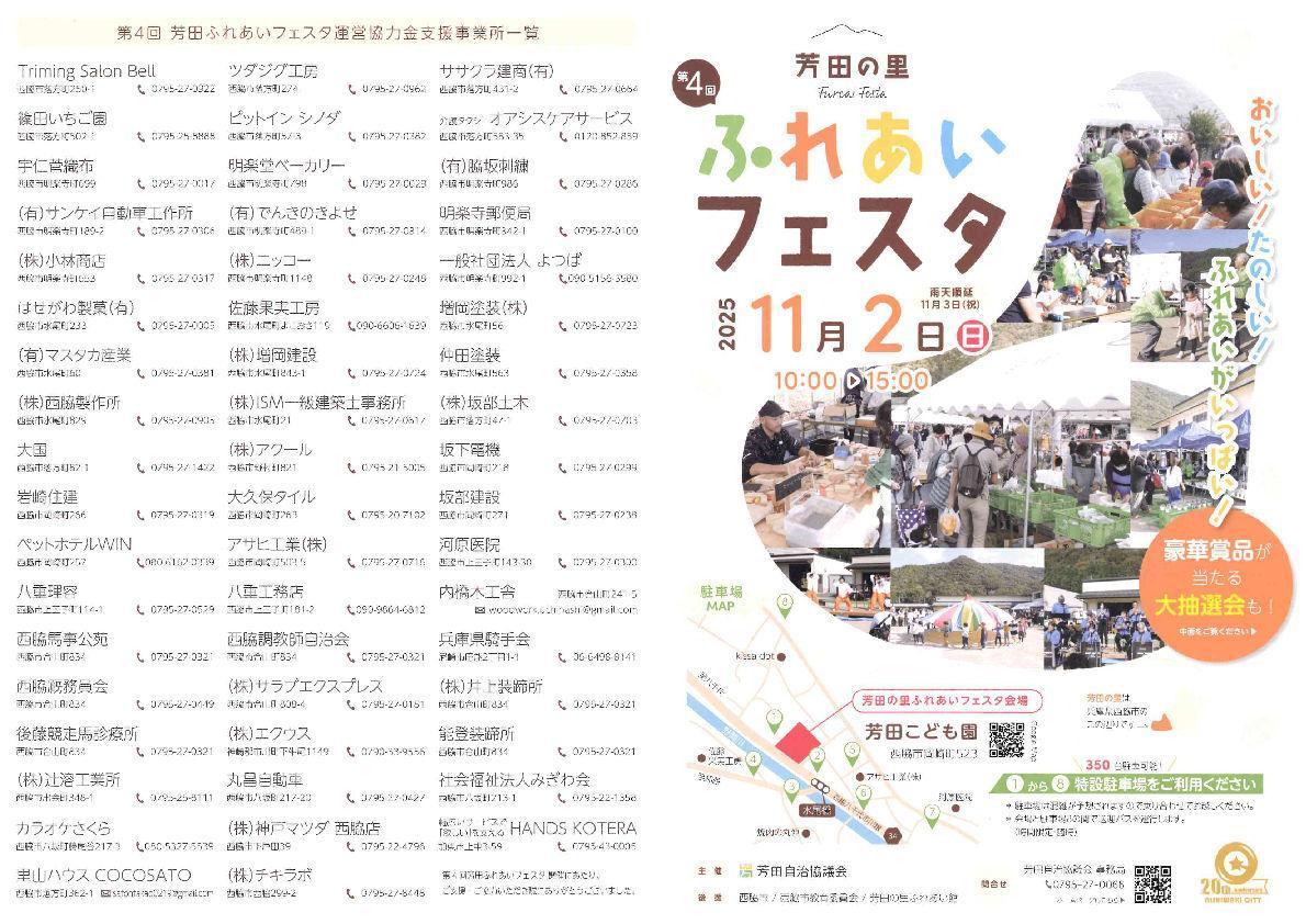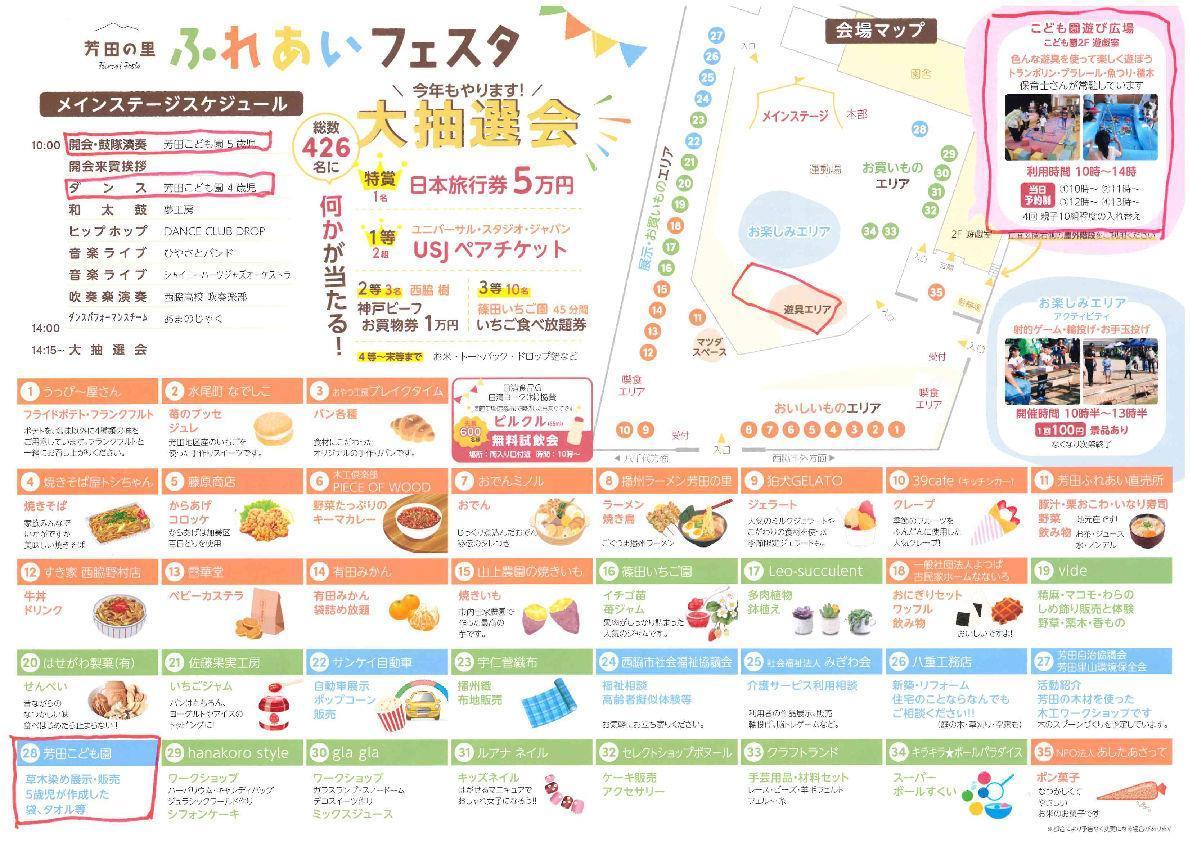 例年家族連れでに大変ぎわうフェスタです。舞台のステージショウやお楽しみゲームと共に午後には大抽選もあり沢山の飲食ブース等で楽しみながら芳田の里の1日を楽しめます。ご家族一緒に