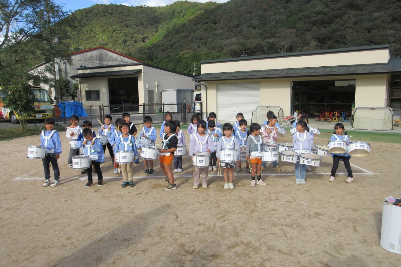 11月2日(日)の芳田ふれあいフェスタに5歳児は開会式オープニングに「ちびまるこちゃん音頭」の曲で鼓隊演奏。4歳児はステージショウのトップで「あいうえおおんがく」でダンスとバルーン演技を披露。5歳児は「草木染めショップ」でお店を開き、アカネや玉ねぎで染めたタオルやハンカチやバックを販売します。屋内の遊戯室では「トランポリン」「プラレール」「魚釣り」「大型積み木」の遊び広場を開きます。屋外では幼児用のゾウさん・くまさん滑り台、コーヒーカップ、わたり棒、アンパンマン号等々幼児用遊具を開放し芝生斜面も開放します。