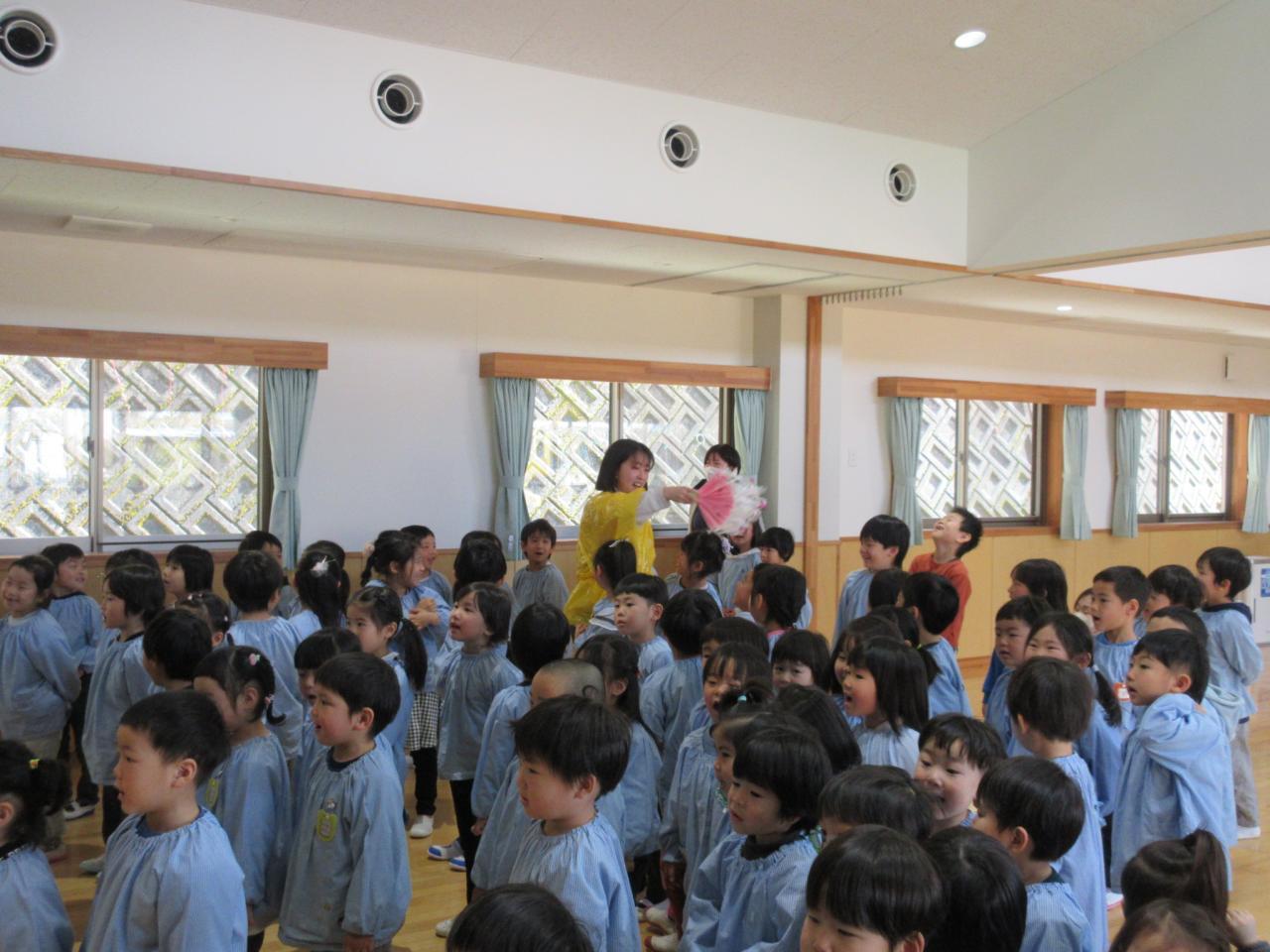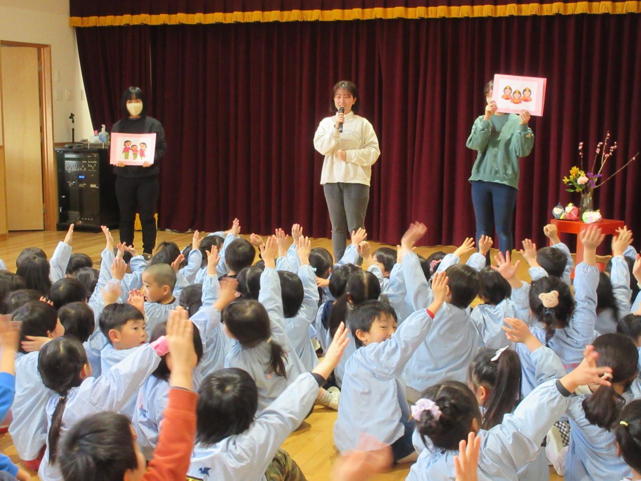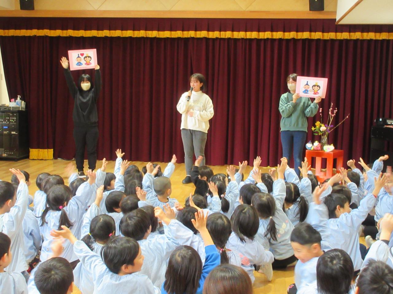 実写版おひなさまの話を聞いたり、歌をうたったり、クイズやダンスをして楽しみましたよ😄