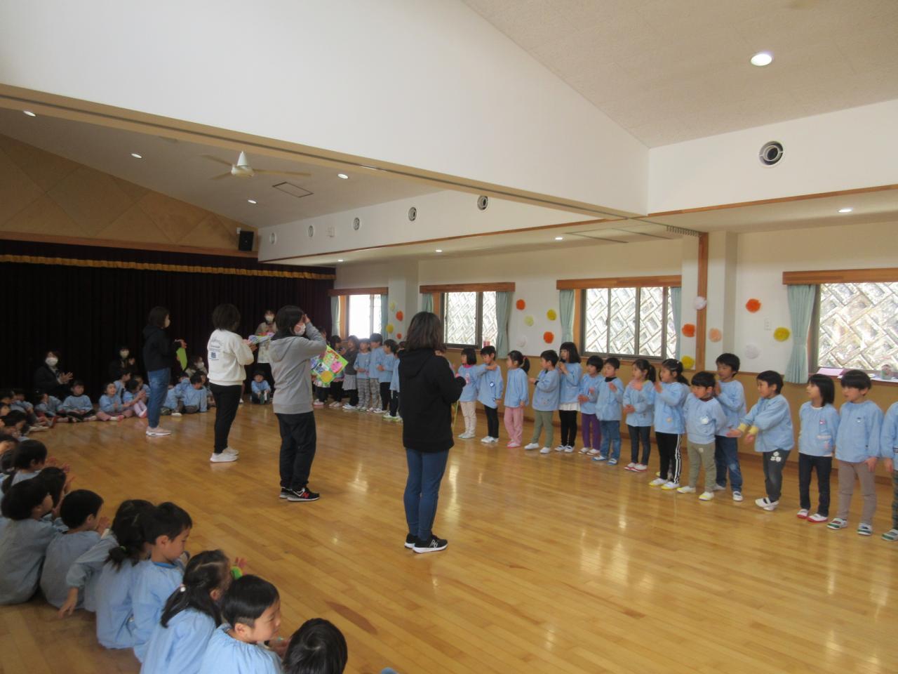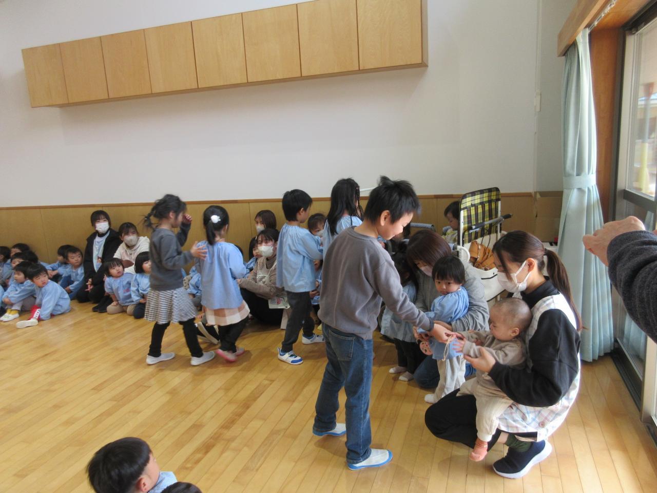 いつも優しく一緒に遊んでくれた、くま組・らいおん組のお兄ちゃん・お姉ちゃんと、プレゼントの交換をしたり、歌のプレゼントをしたりして楽しい時間を過ごしました✨😄✨