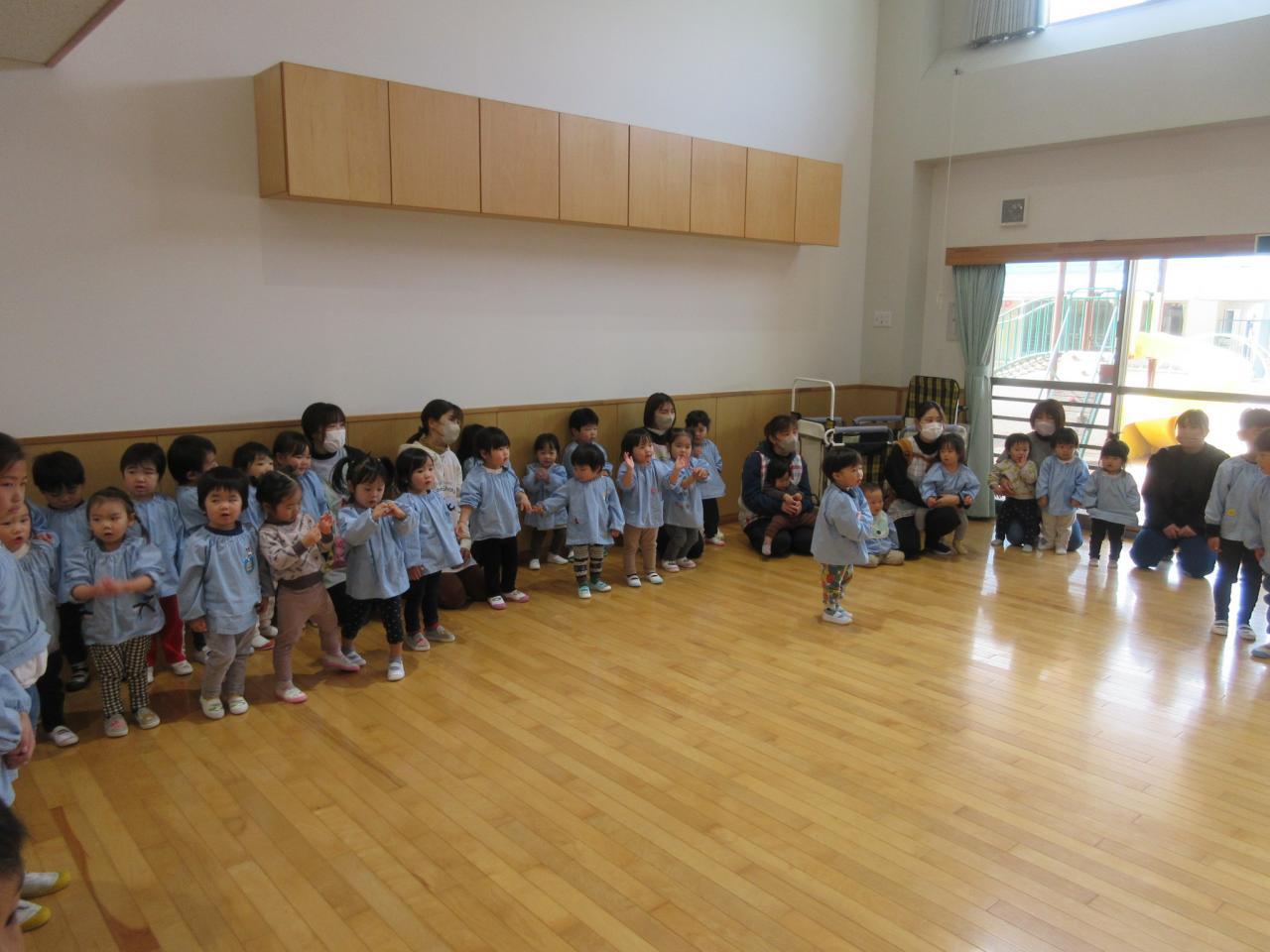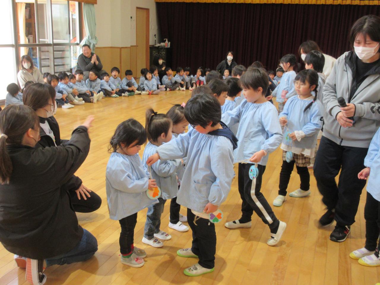 0歳児から、こども園に来ていたお友だちが代表して、キーホルダーについている🍀四つ葉のクローバー🍀のお話をしてくれました😄