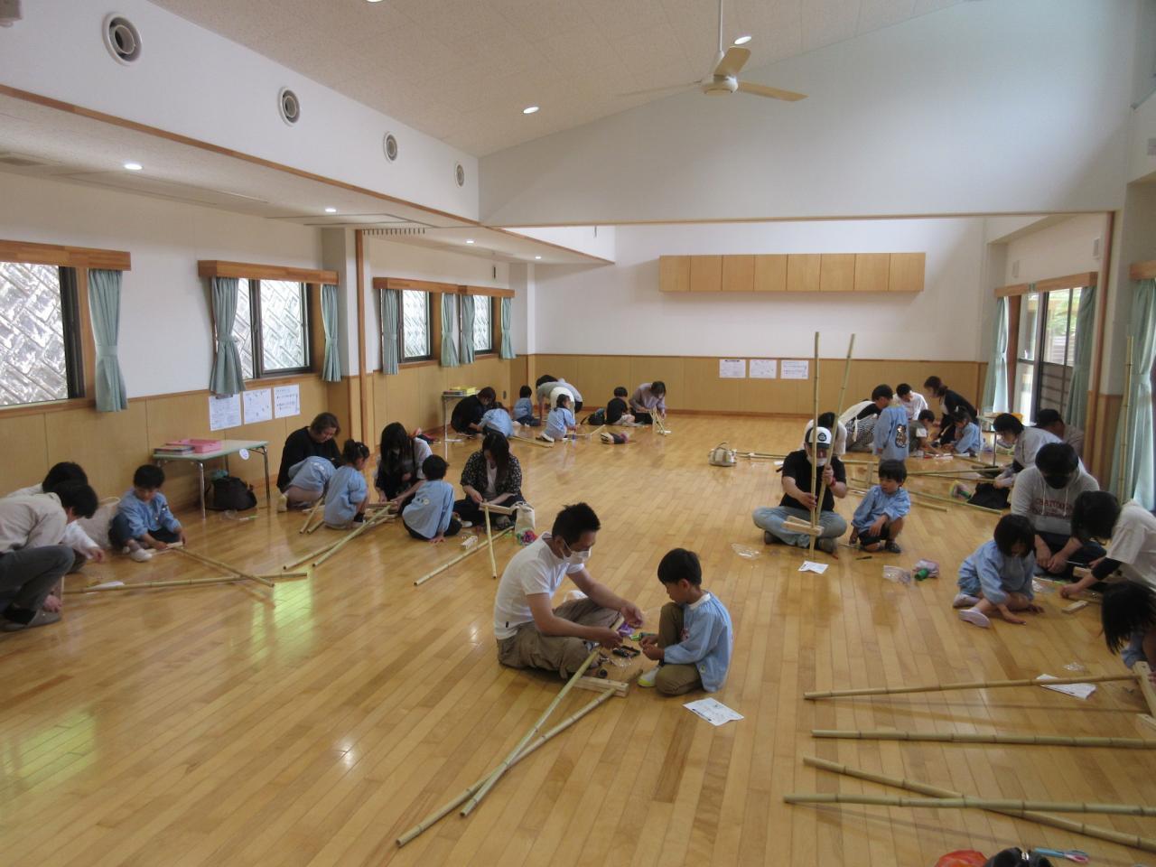朝の会の様子を見ていただいたり、すまいるカード😄(5歳児は「自尊感情や自己肯定感を高めていける活動」として、保護者の方にお子様の良いところや、頑張っているところを見つけて、カードに書いていただいています。)を、保護者の方に読んでいただいたり、ふれあい遊びや歌のプレゼント、竹馬作りなどおうちの人と一緒に楽しい時間を過ごしました✨