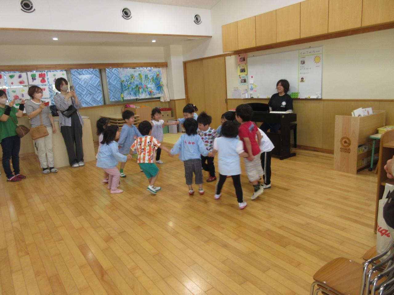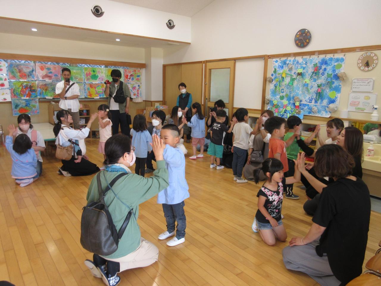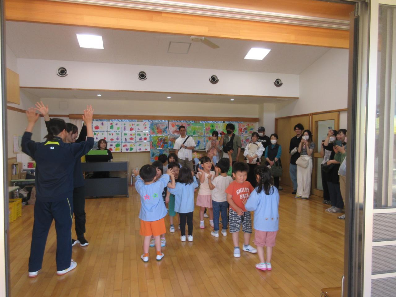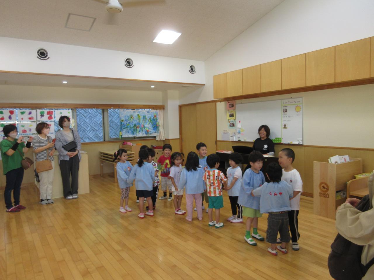 前半は保育室で、朝の会や歌、子ども同士のふれあい遊びなど、普段の様子を見ていただきました✨