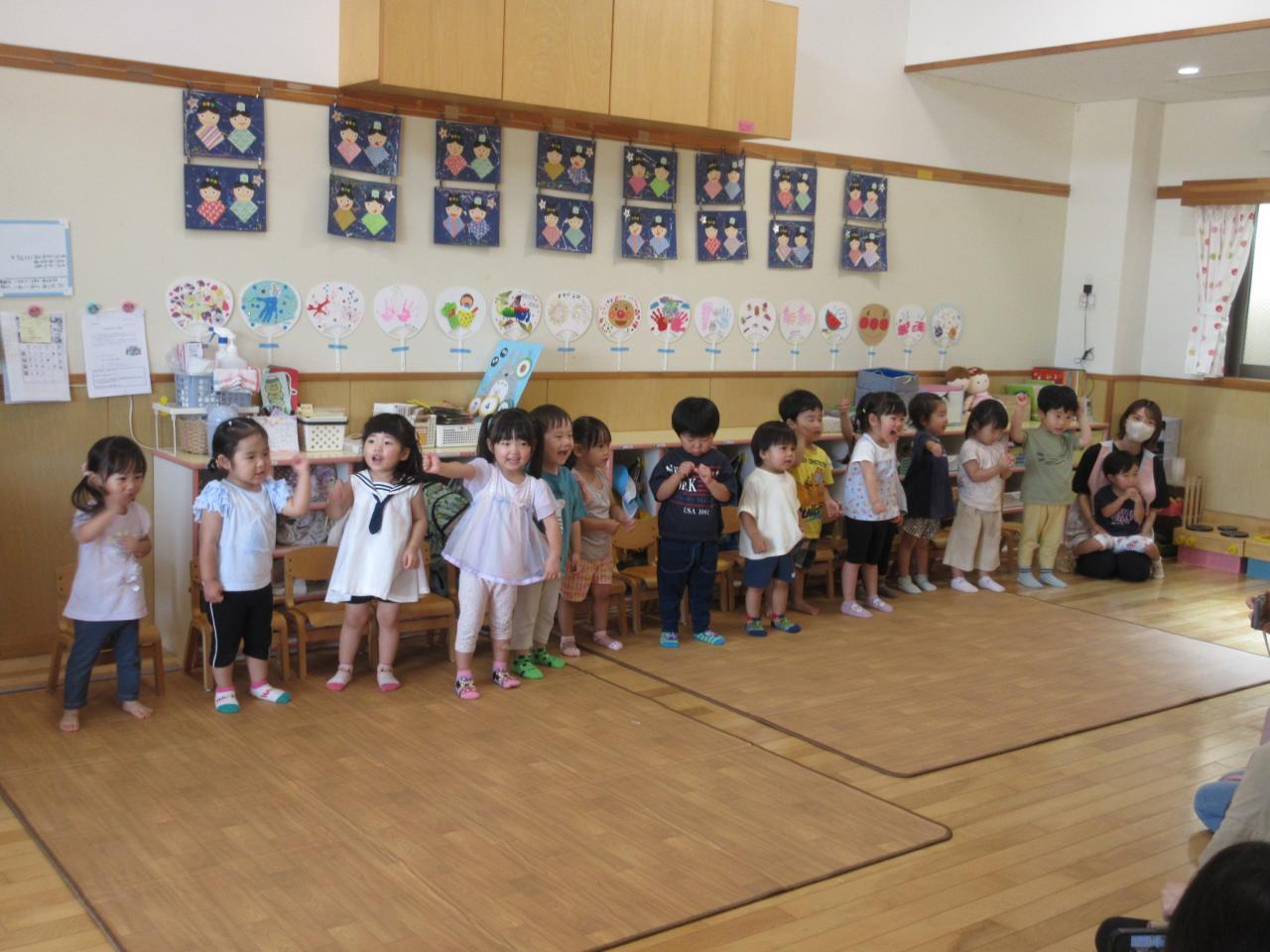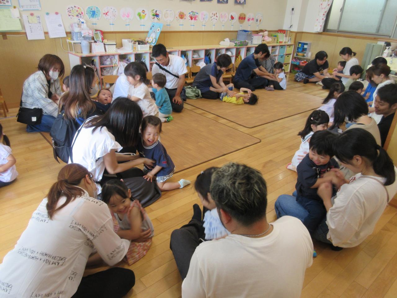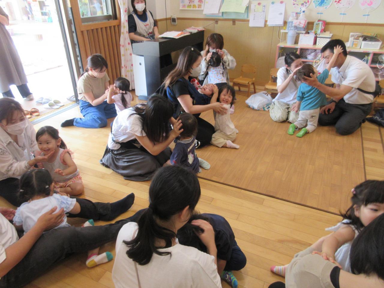 前半は、保育室で朝の会や歌、親子ふれあいあそびをしました✨