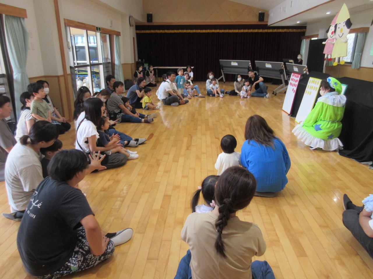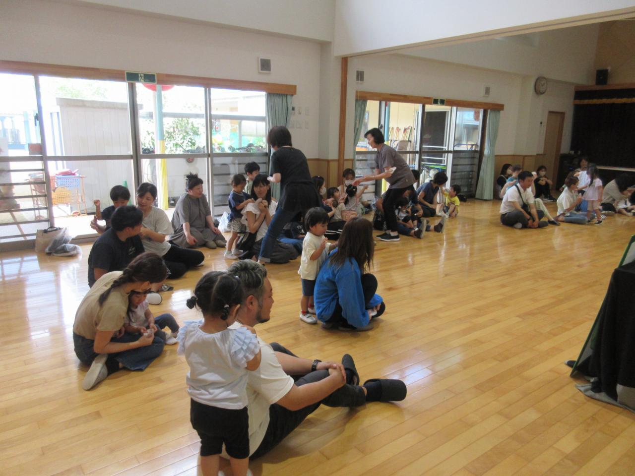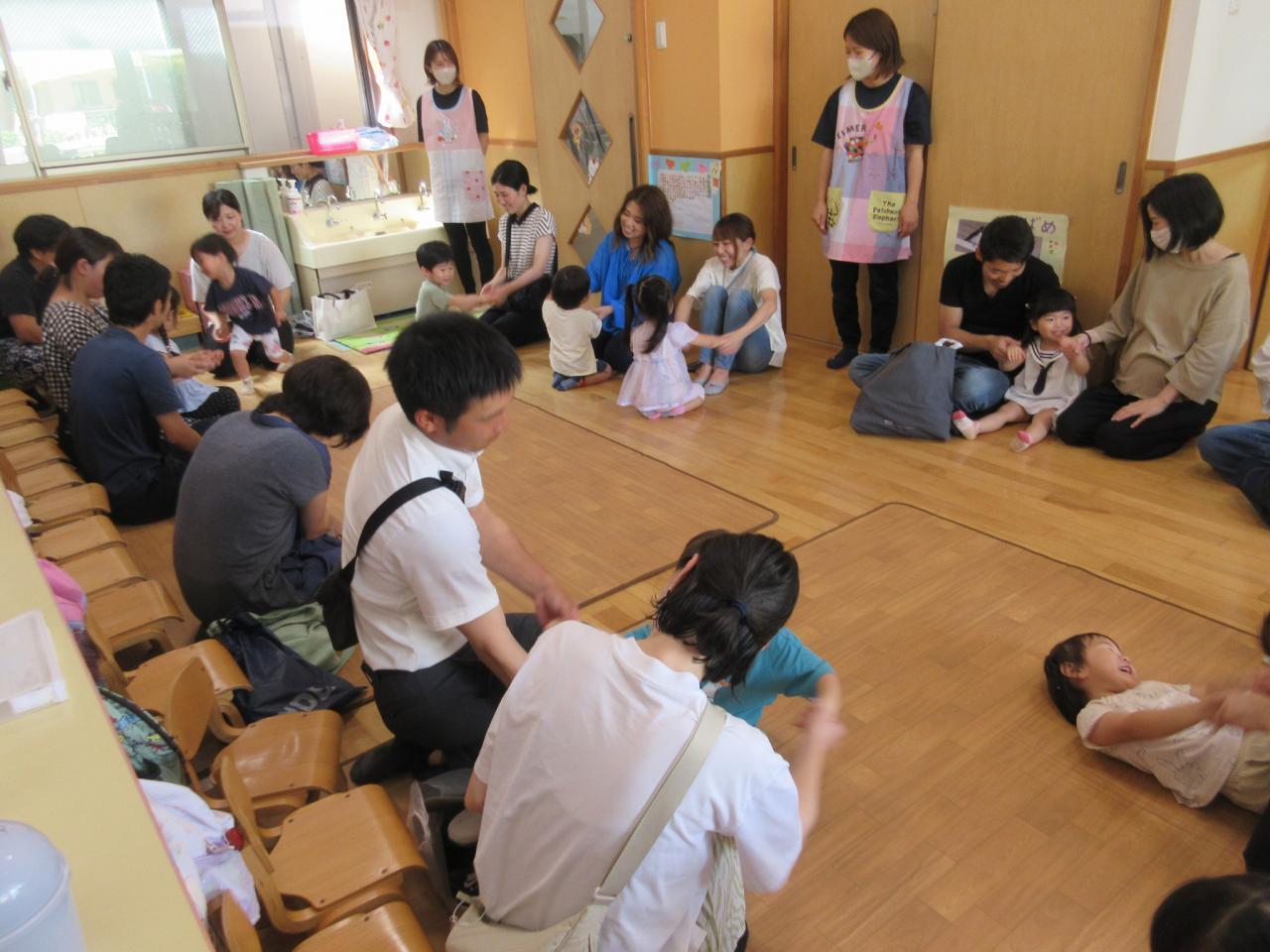 前半は、保育室で朝の会や歌、親子ふれあいあそびをしました✨