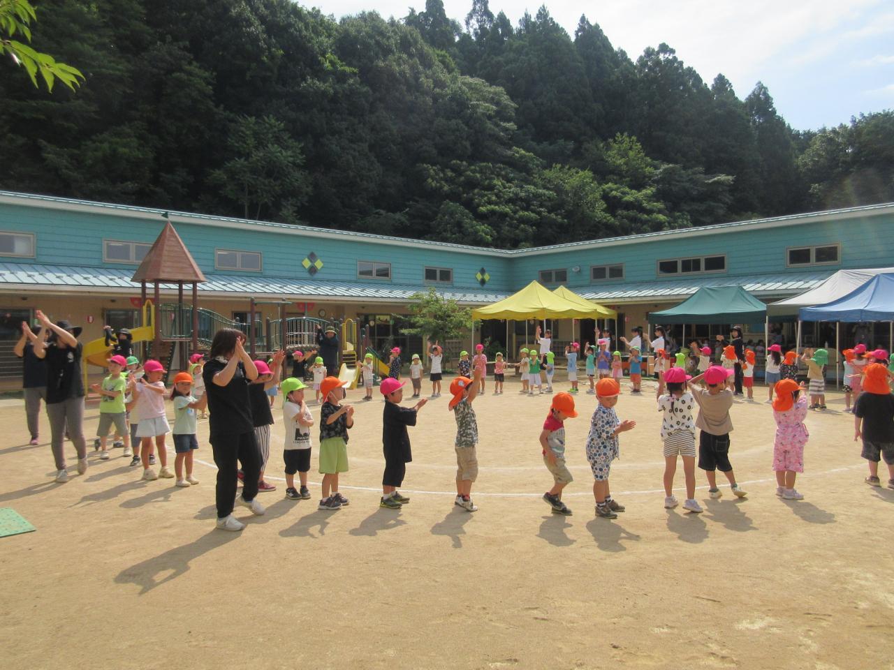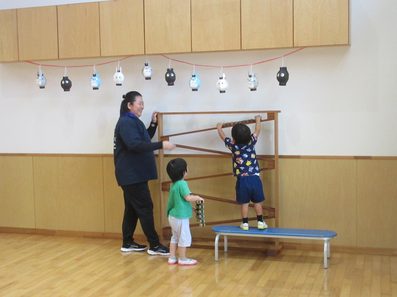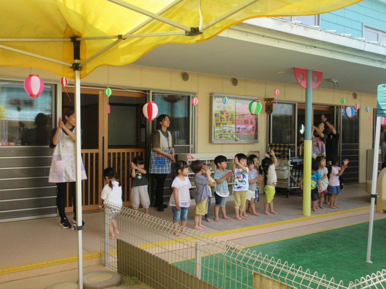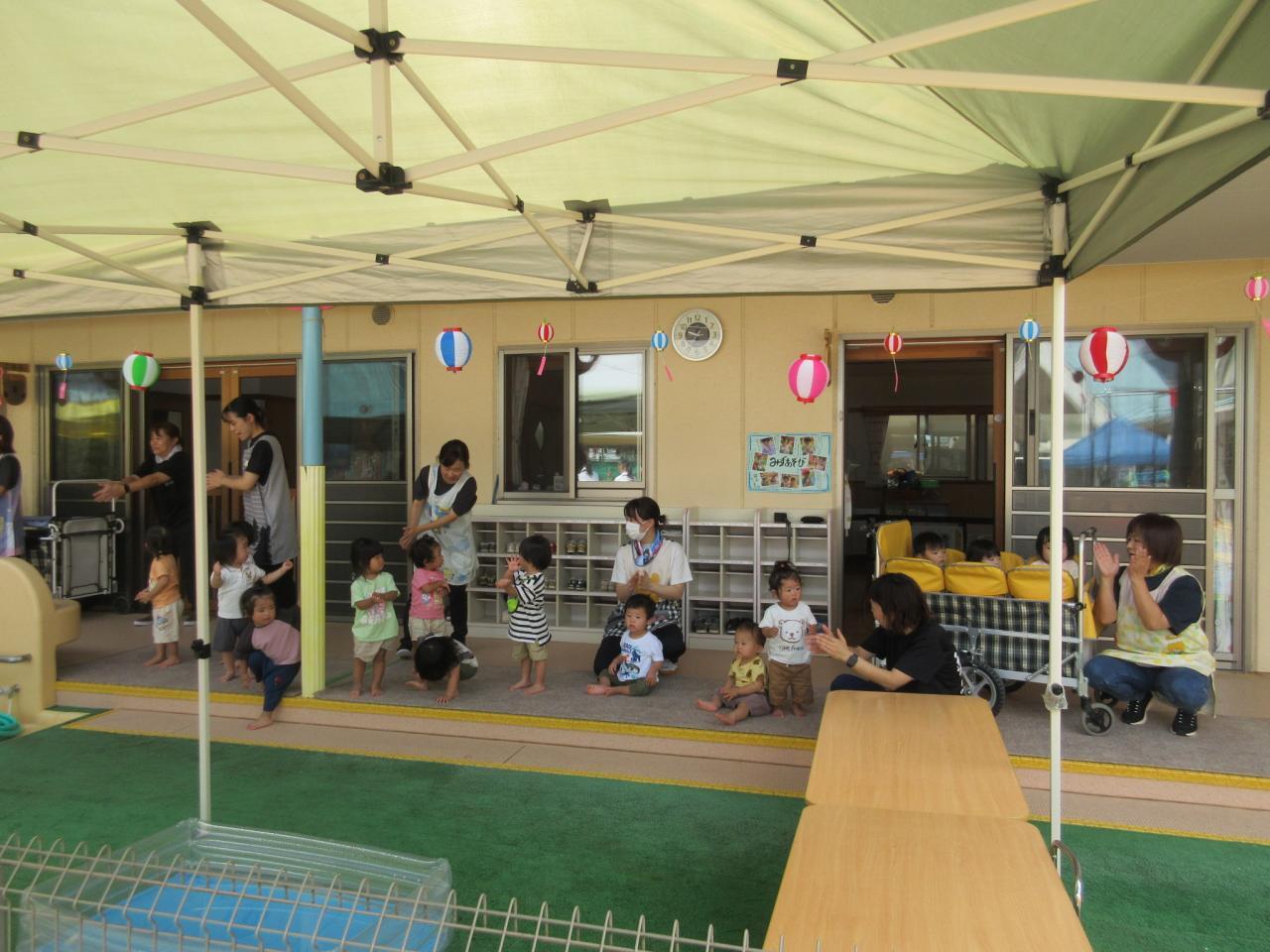 0・1・2歳児は、テラスで盆踊りに参加したよ!!