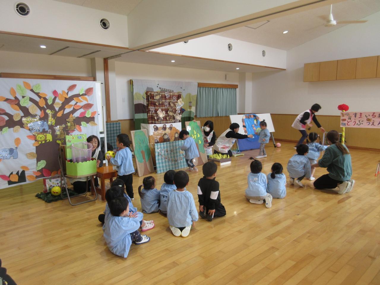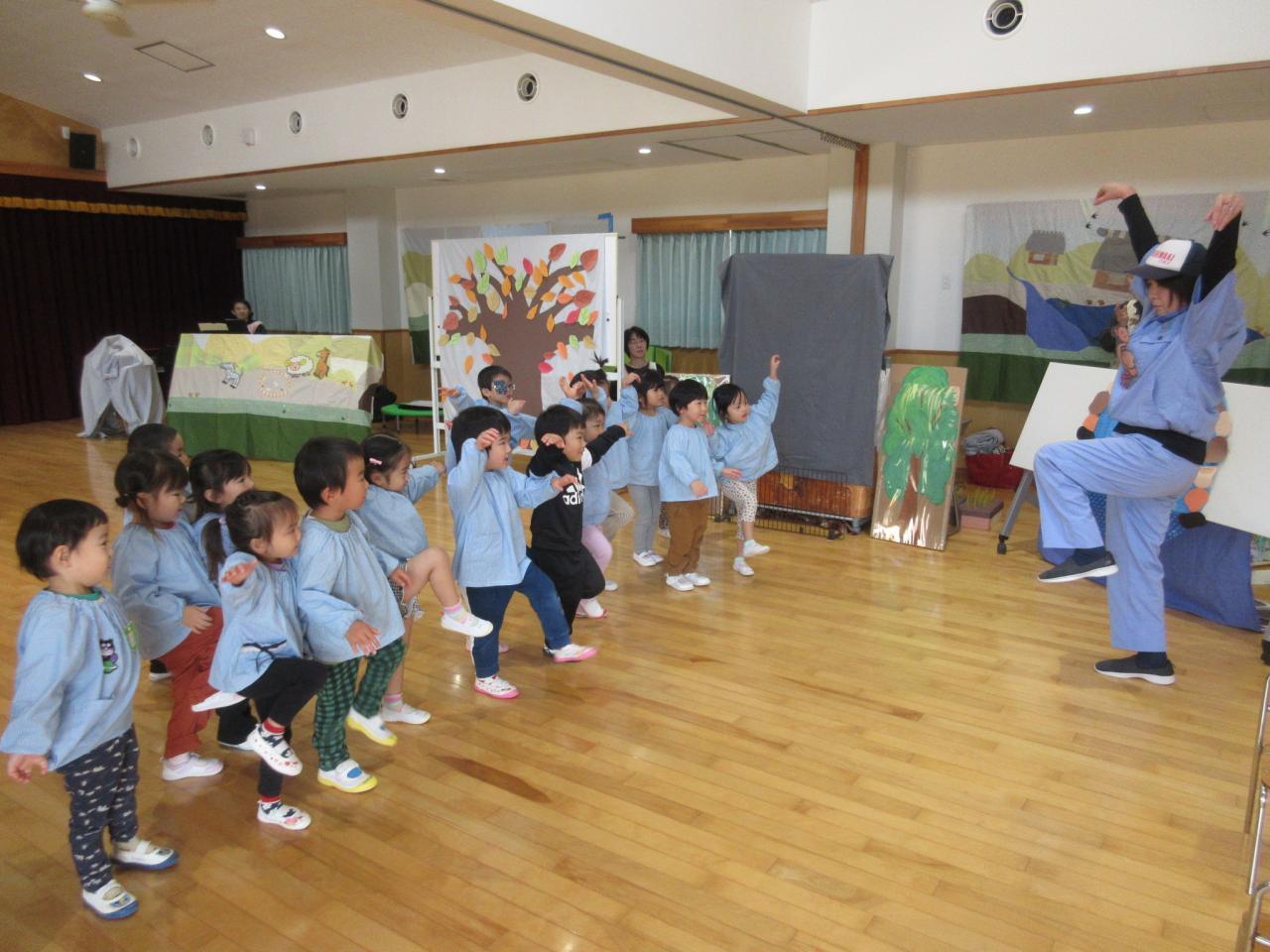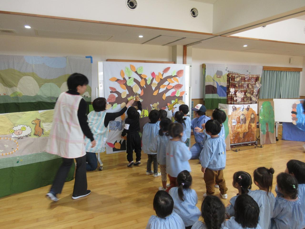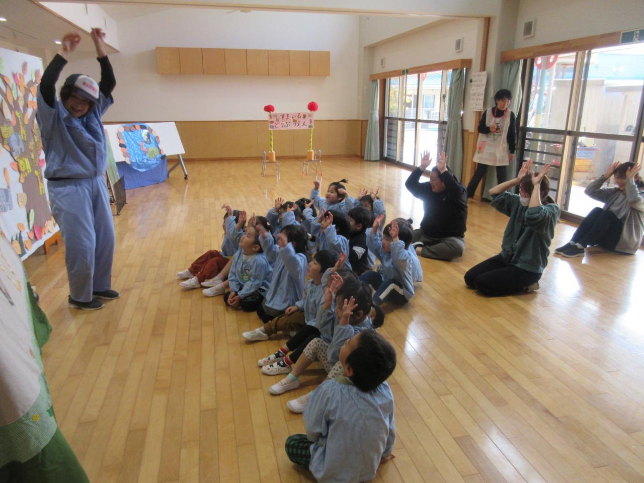 11月22日(金)は、リンクスマイルさんが来てくださり、3歳児が「すまいるどうぶつえん」のお話で一緒にあそびました😄