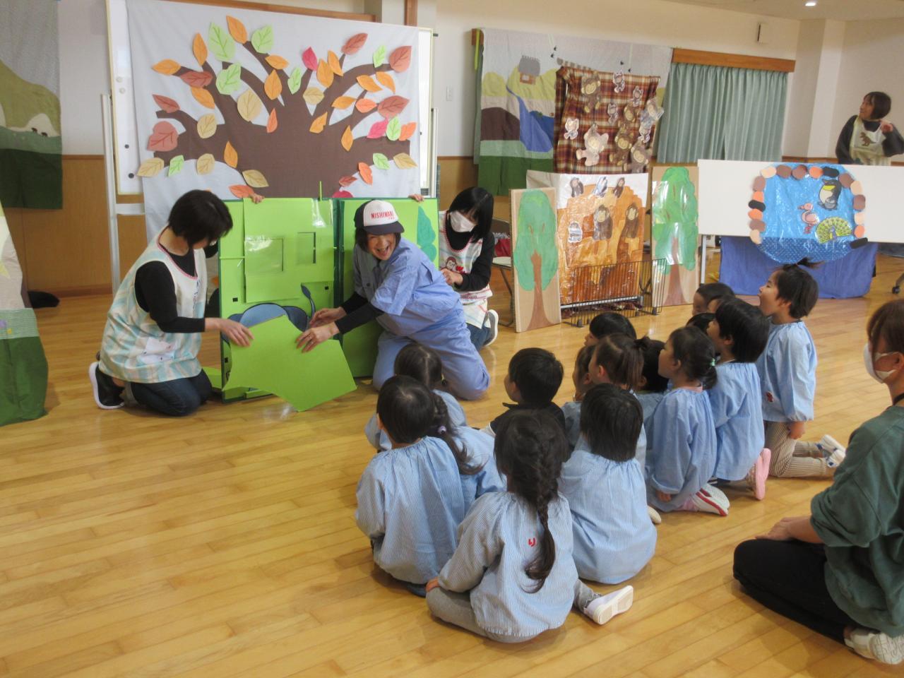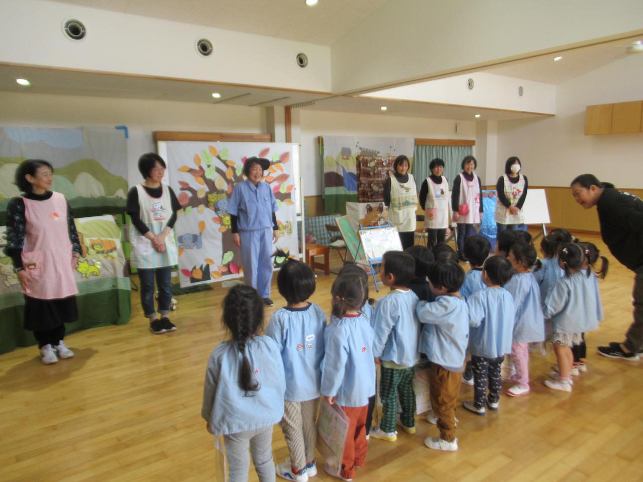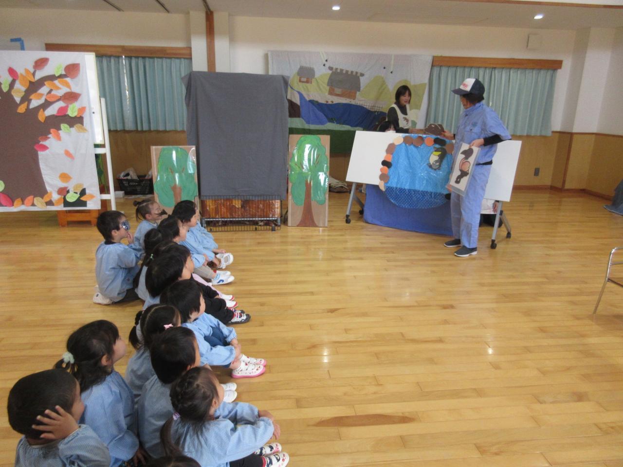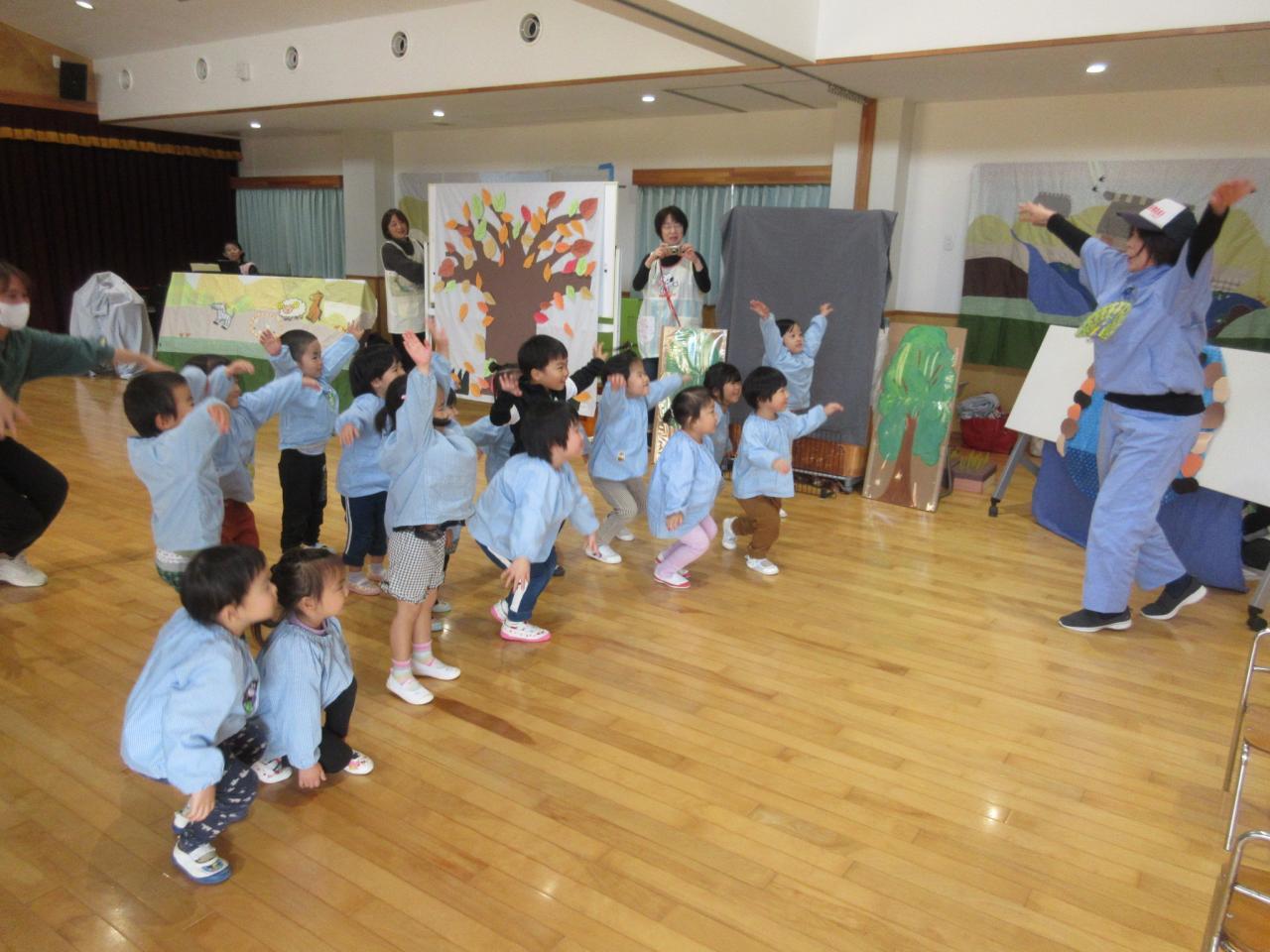 11月22日(金)は、リンクスマイルさんが来てくださり、3歳児が「すまいるどうぶつえん」のお話で一緒にあそびました😄