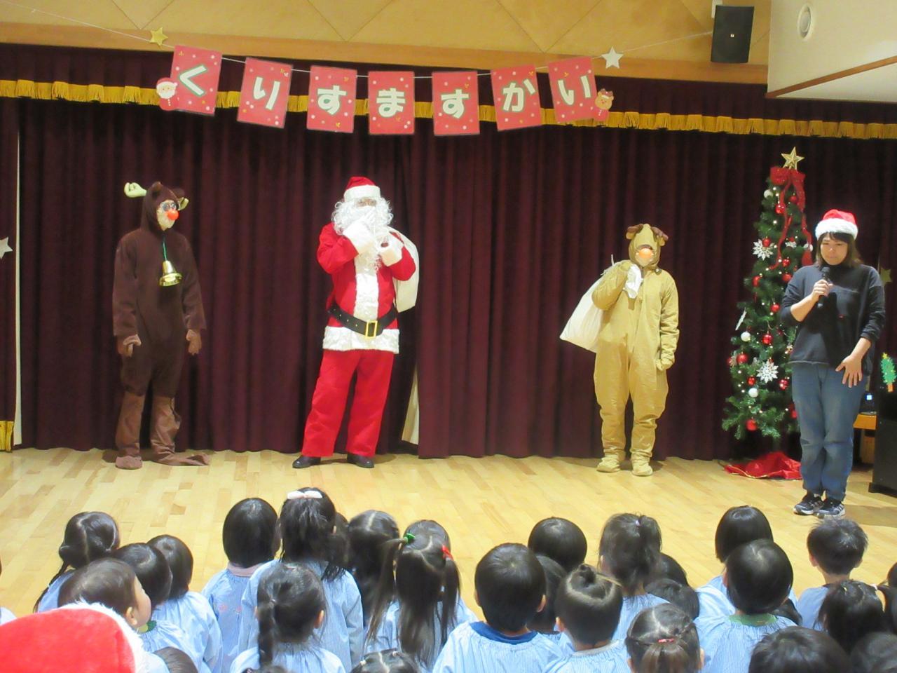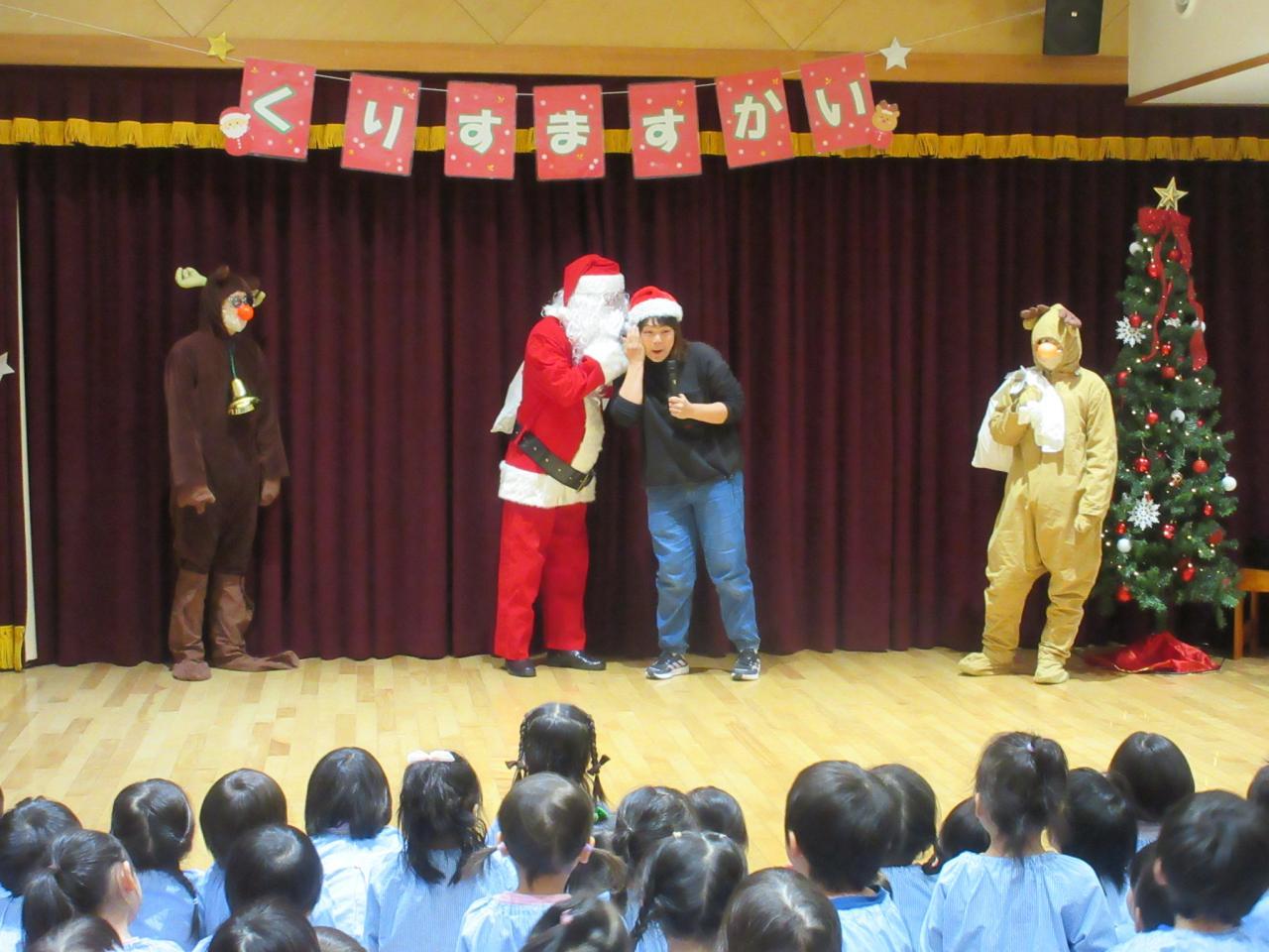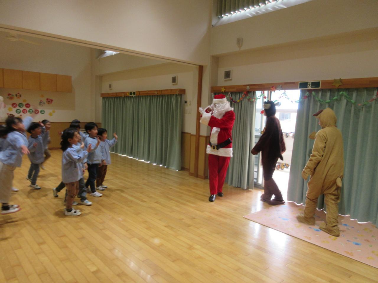 みんなの楽しい歌声を聴いて、サンタさんとトナカイさん登場!!