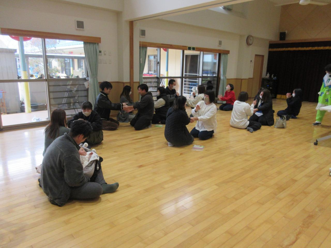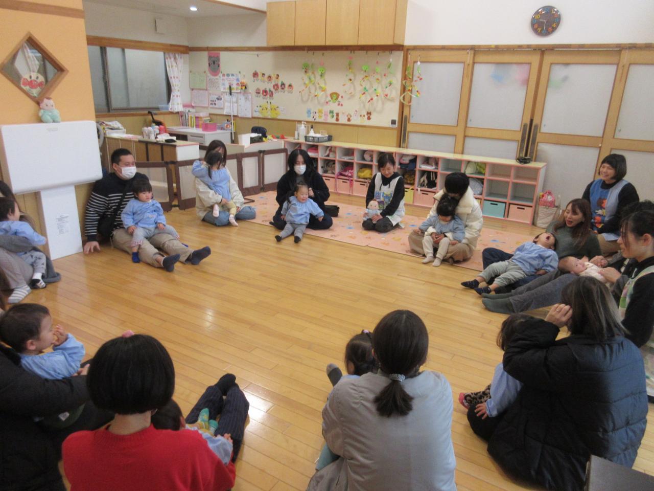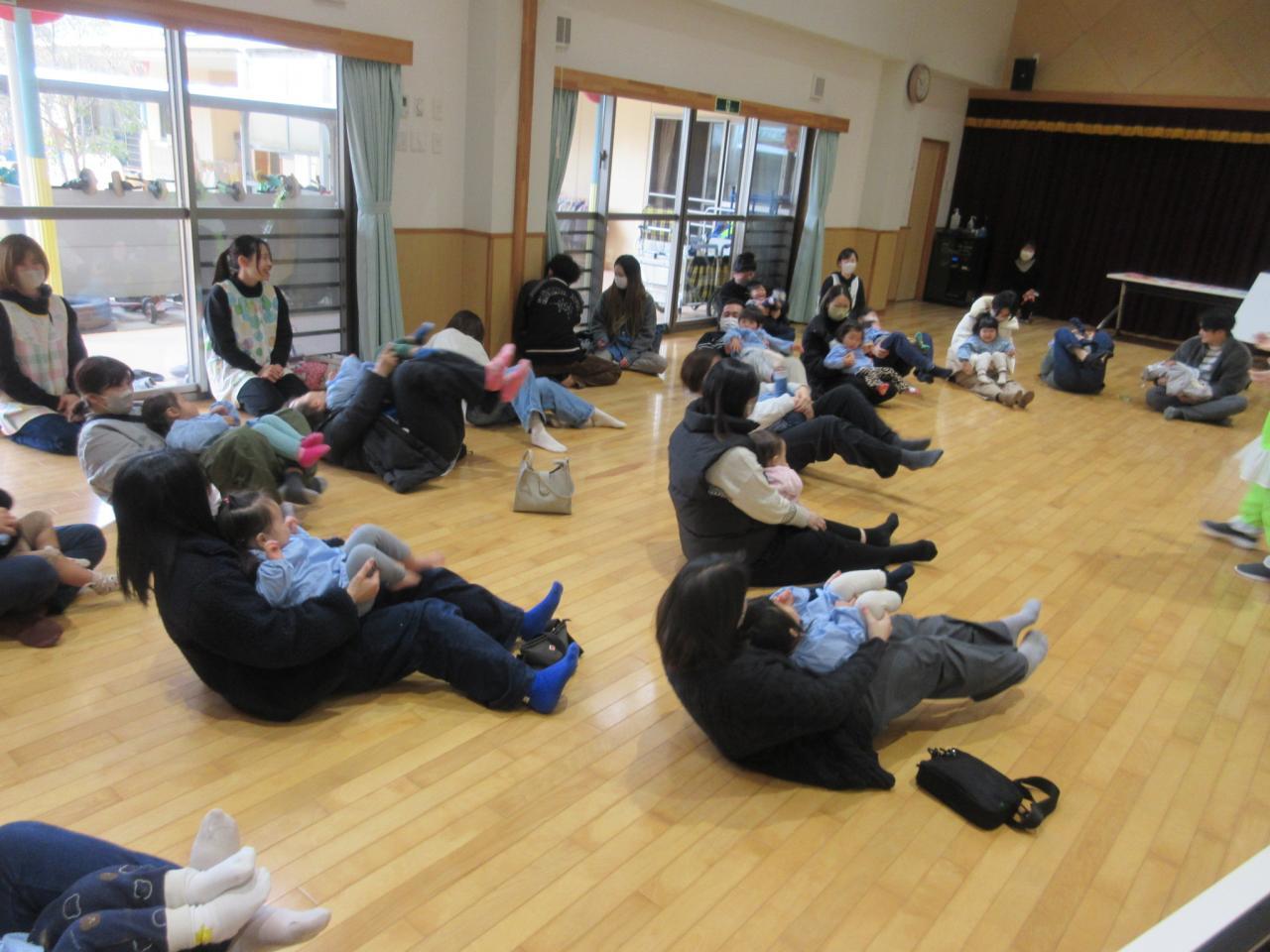 前半は各保育室で、手あそびやふれあい遊びをして親子で楽しみました✨