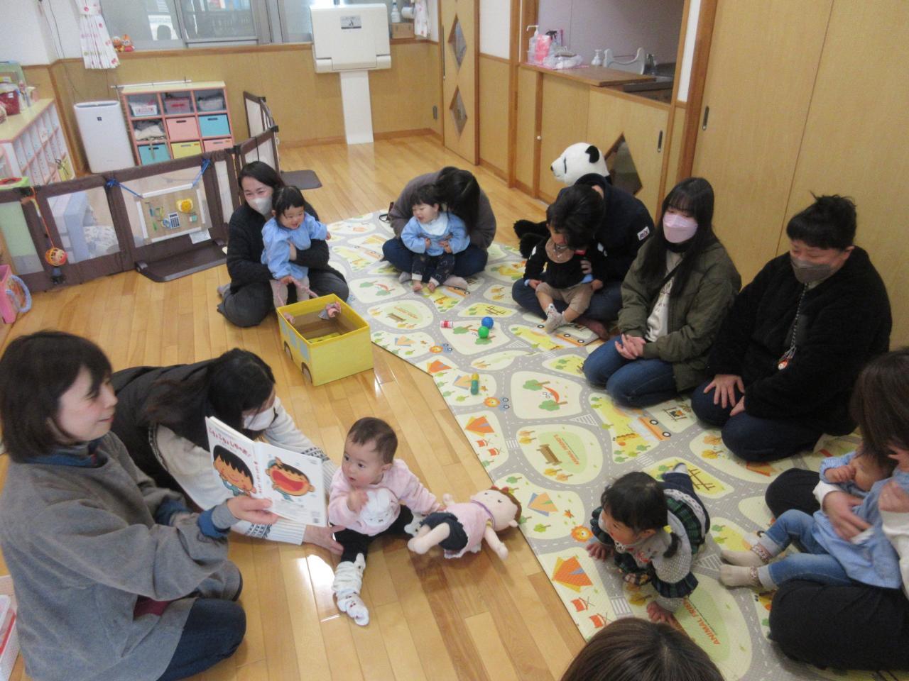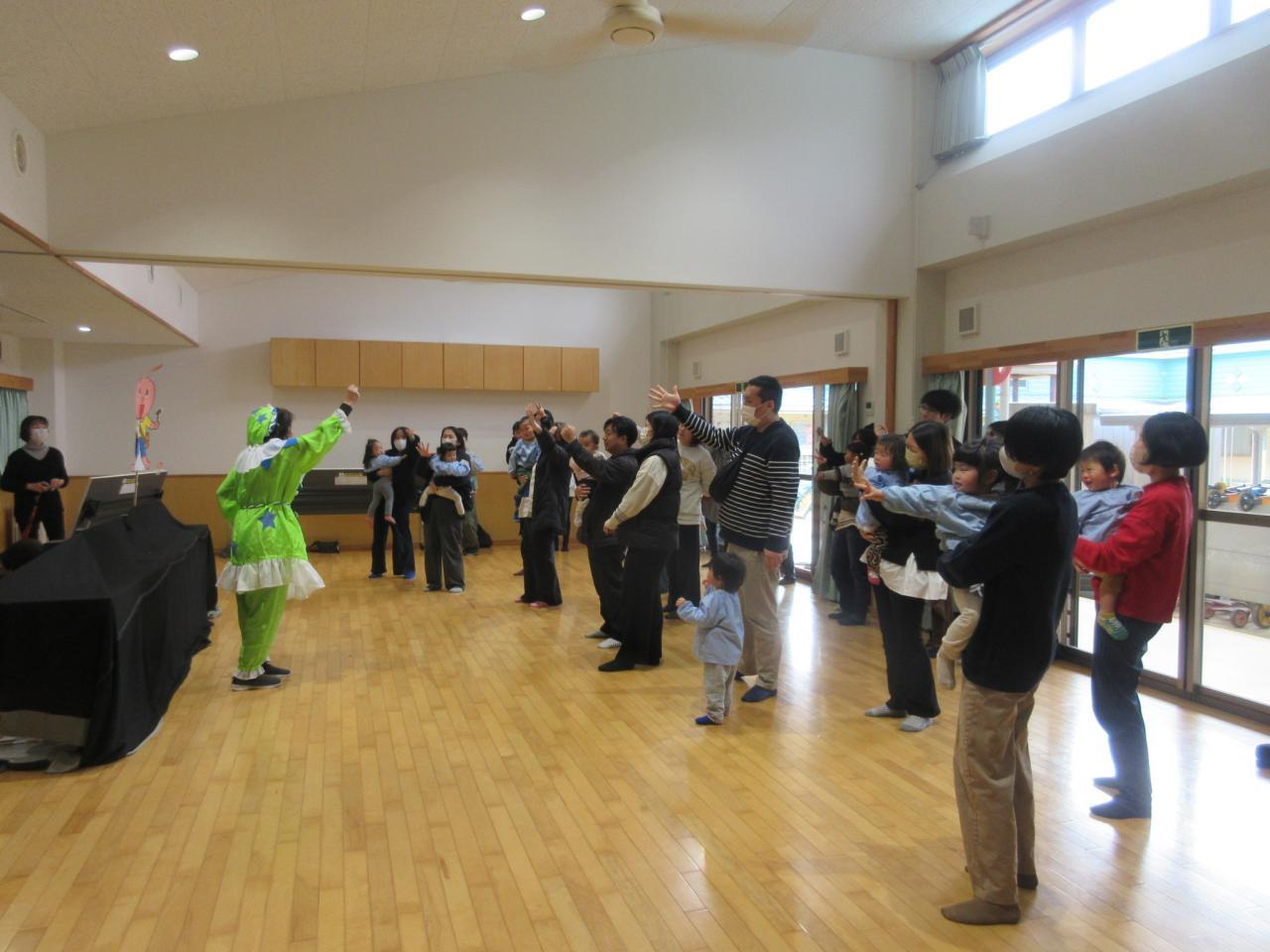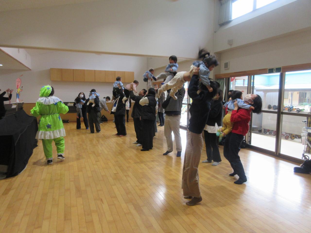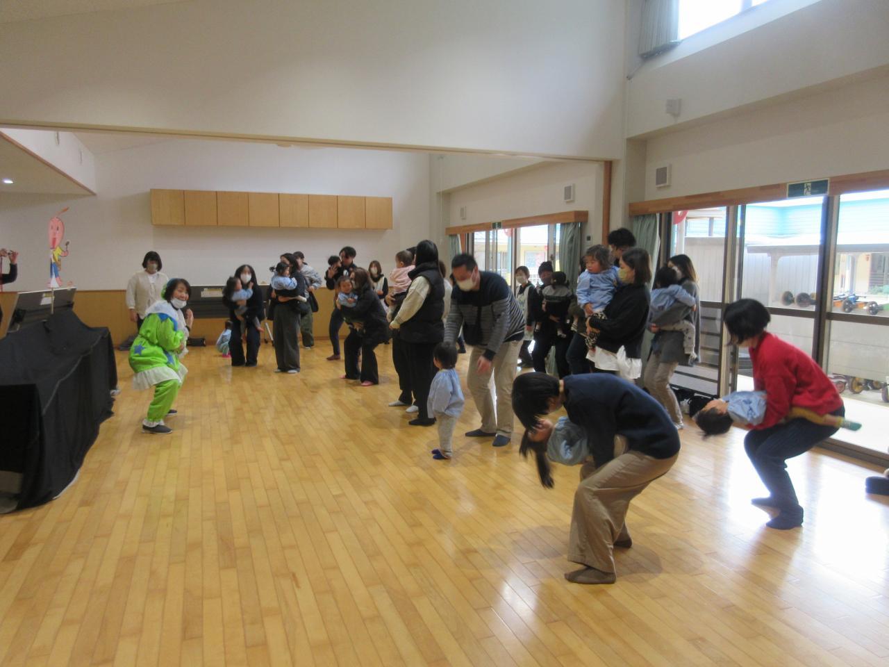 前半は各保育室で、手あそびやふれあい遊びをして親子で楽しみました✨