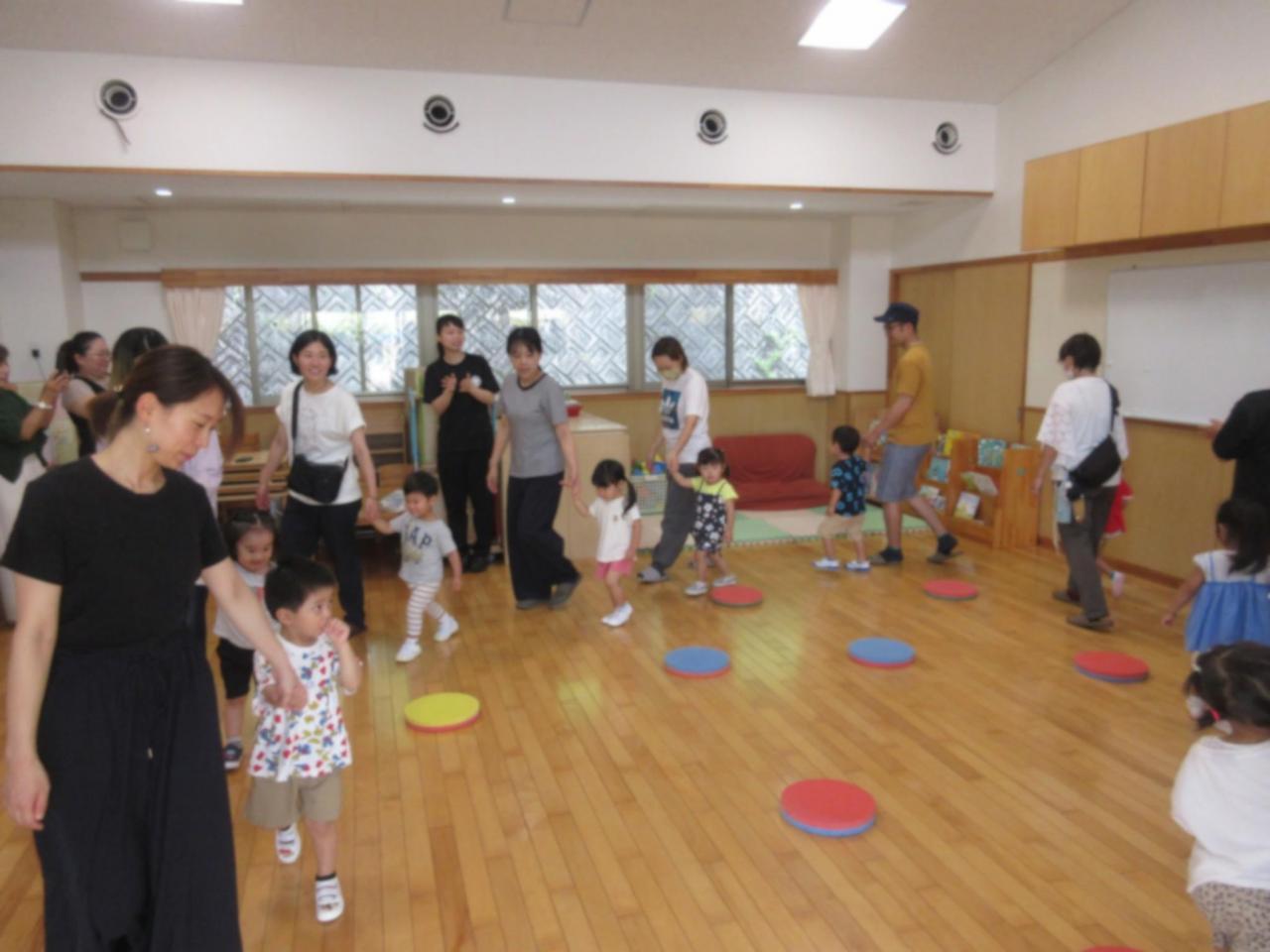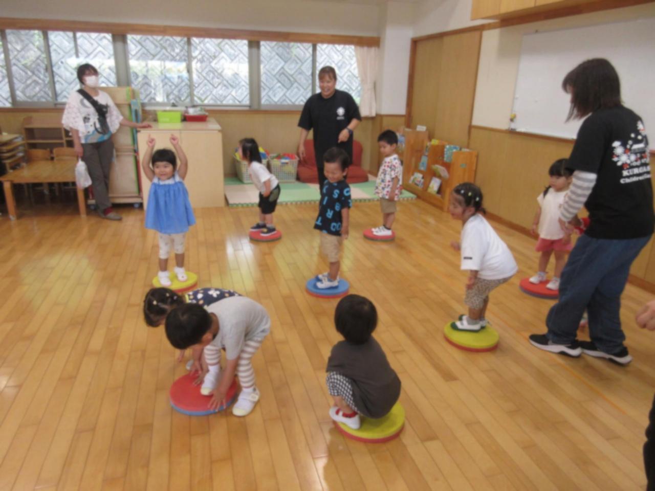 ゲーム 音楽が止まったら、まるの上にあがってね!!