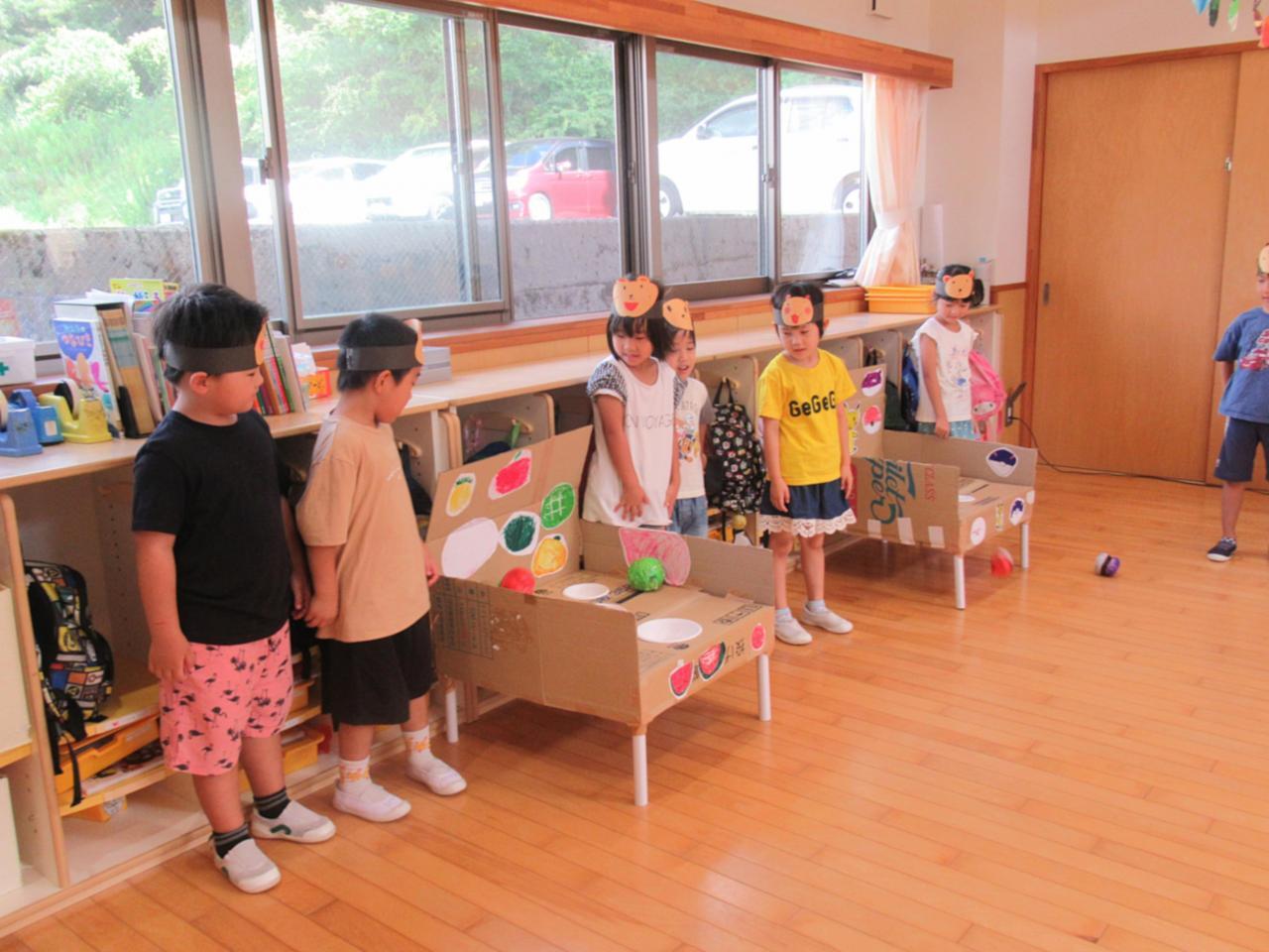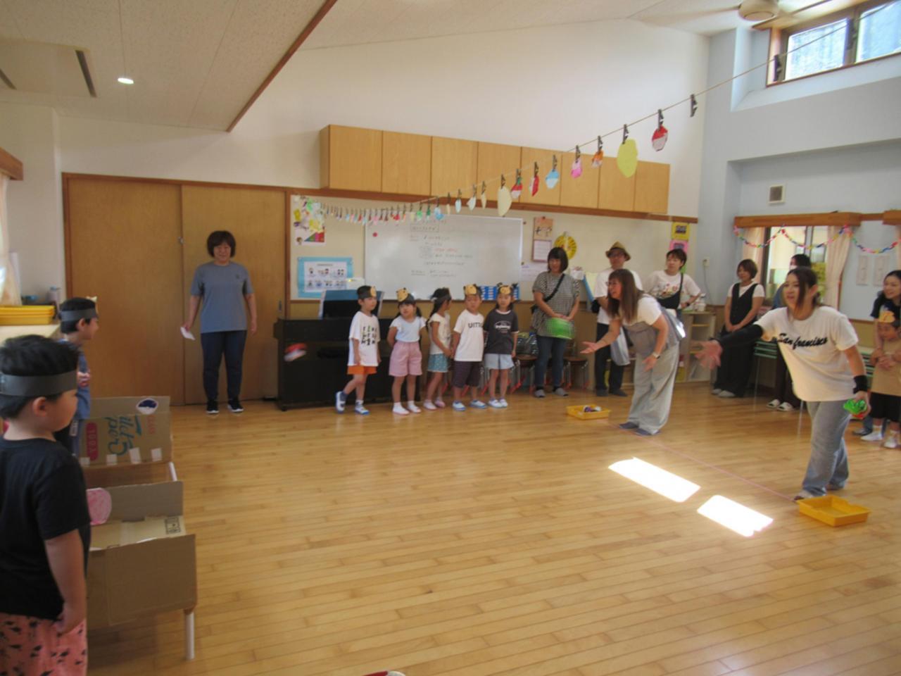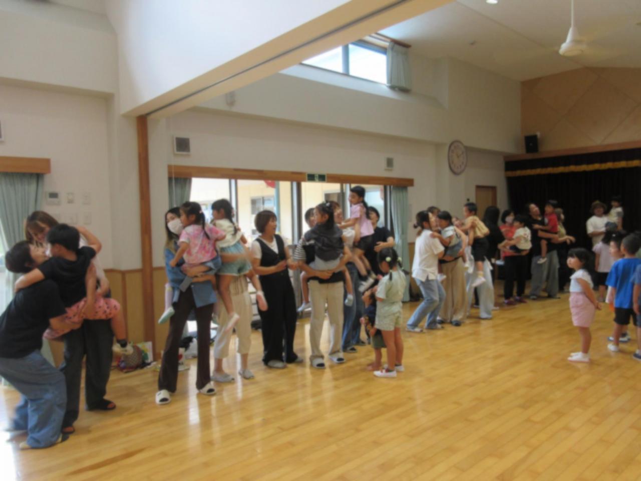 前半は、保育室で「まるなげぽいぽい」を親子で楽しみました✨