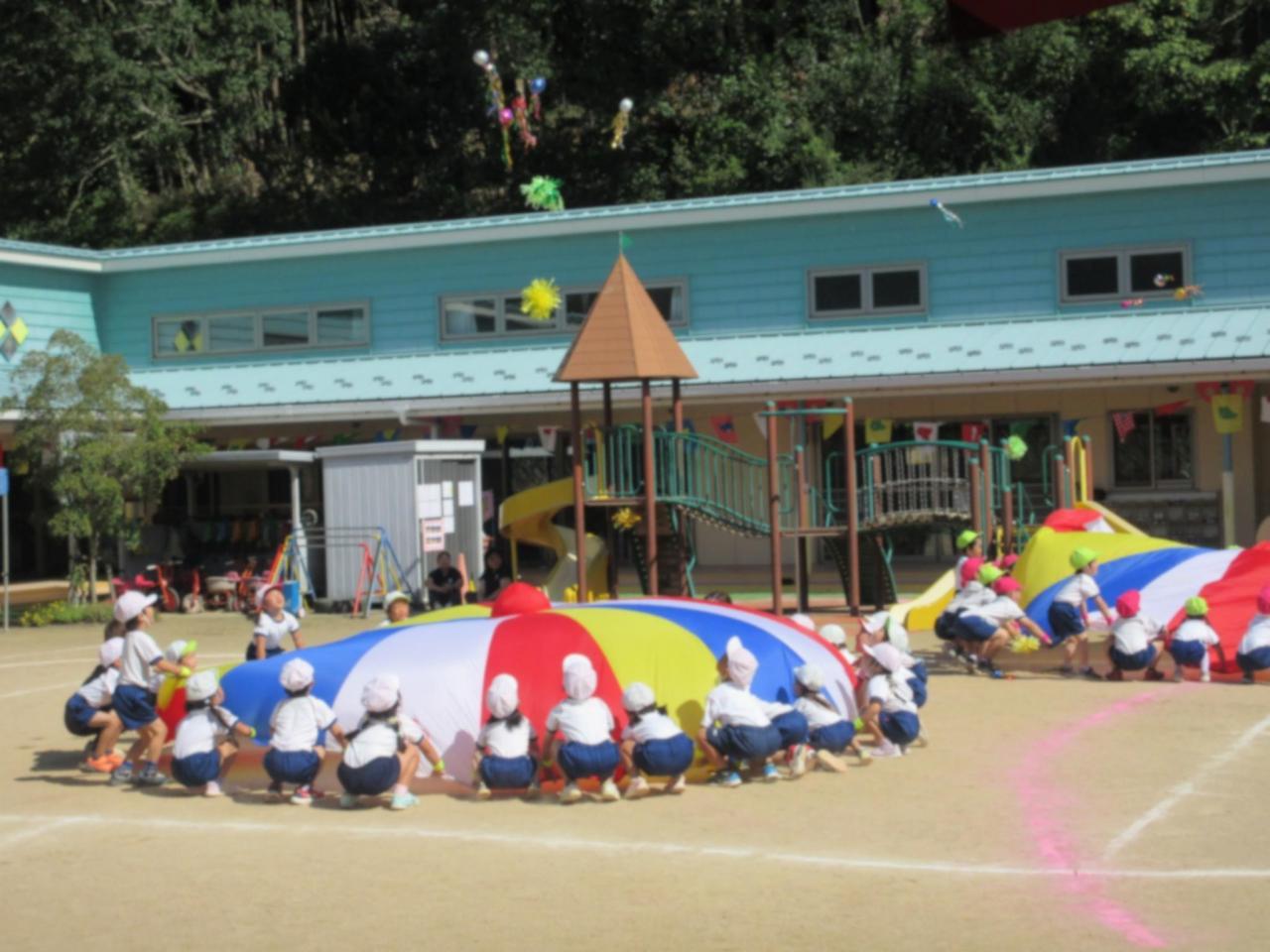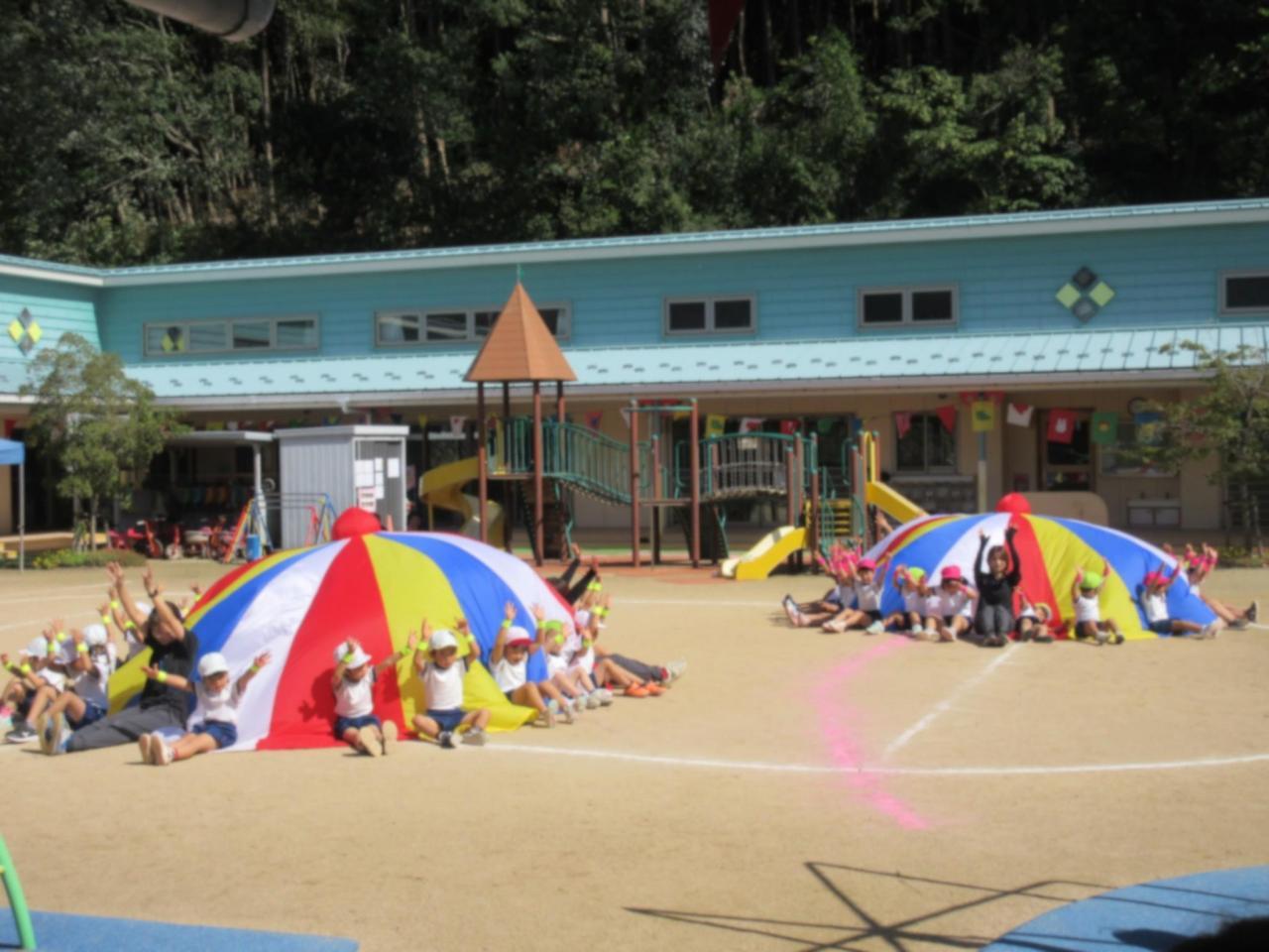 きりん組・くま組合同で楽しくパラバルーンをしました!