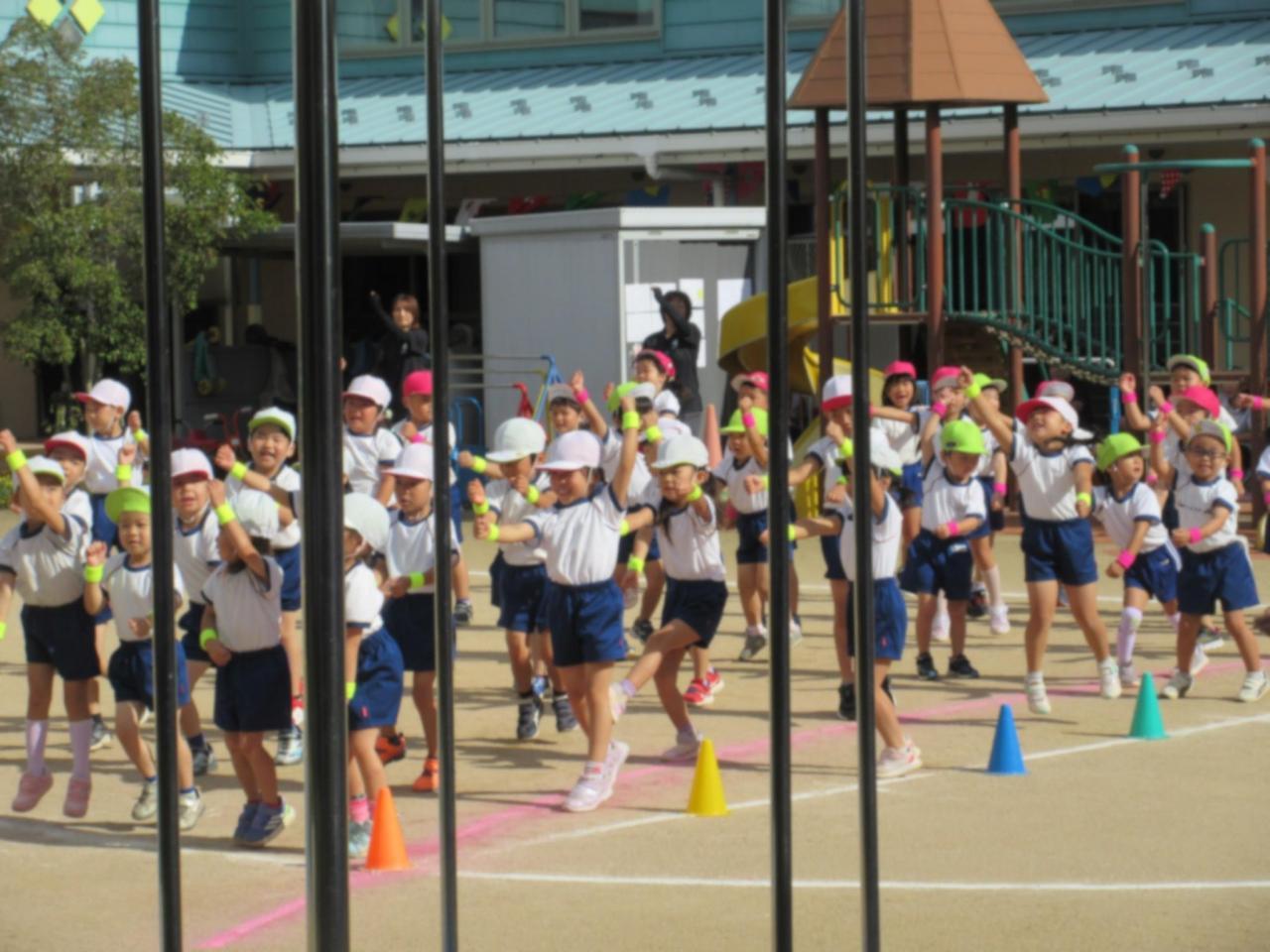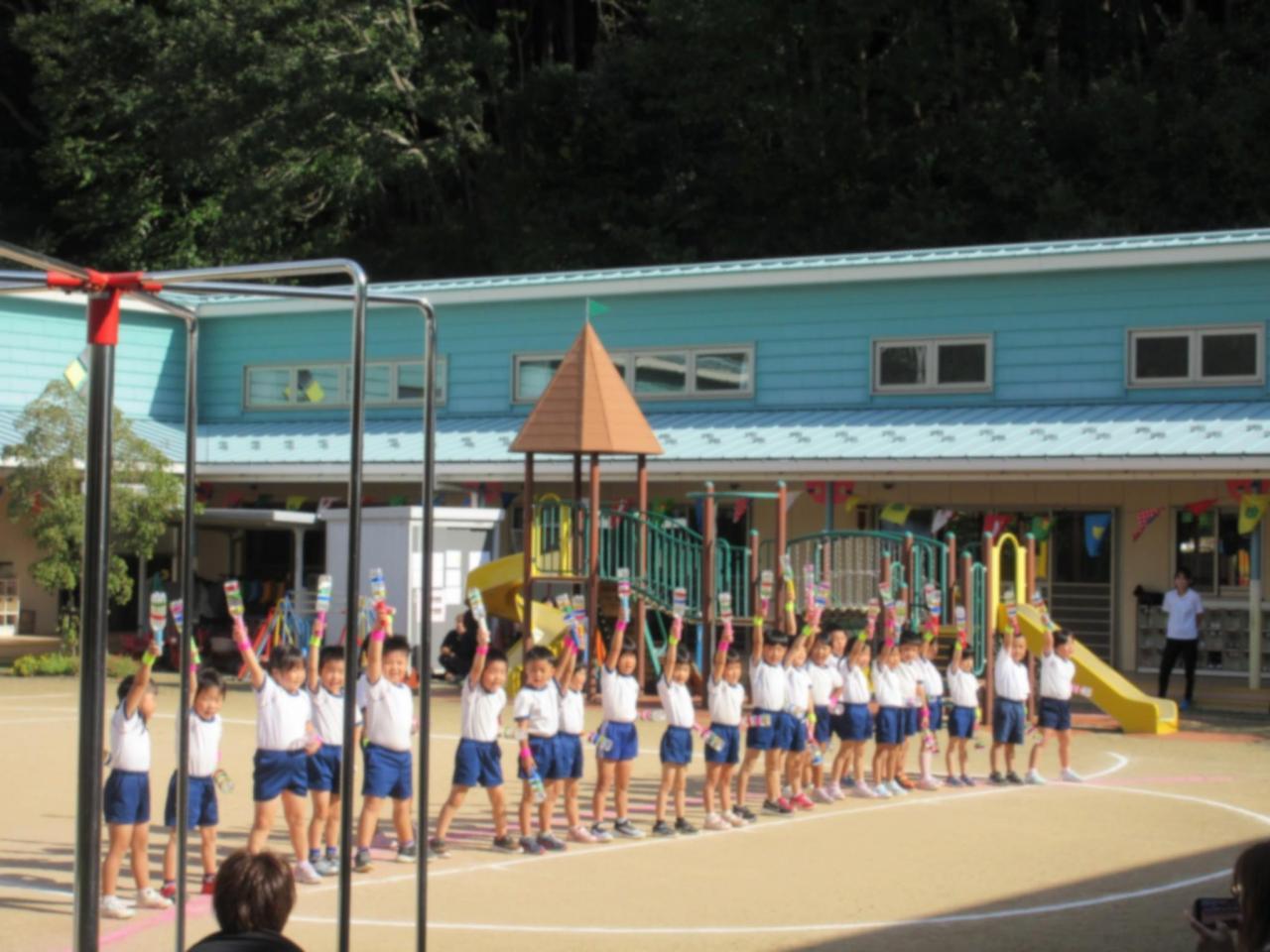 くま組のリペットバトンを使ったダンスで、運動会が始まりました😄