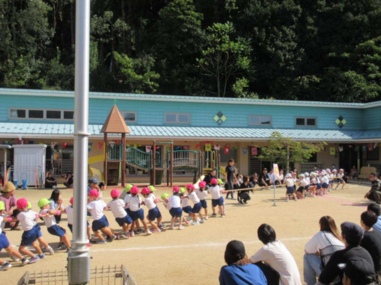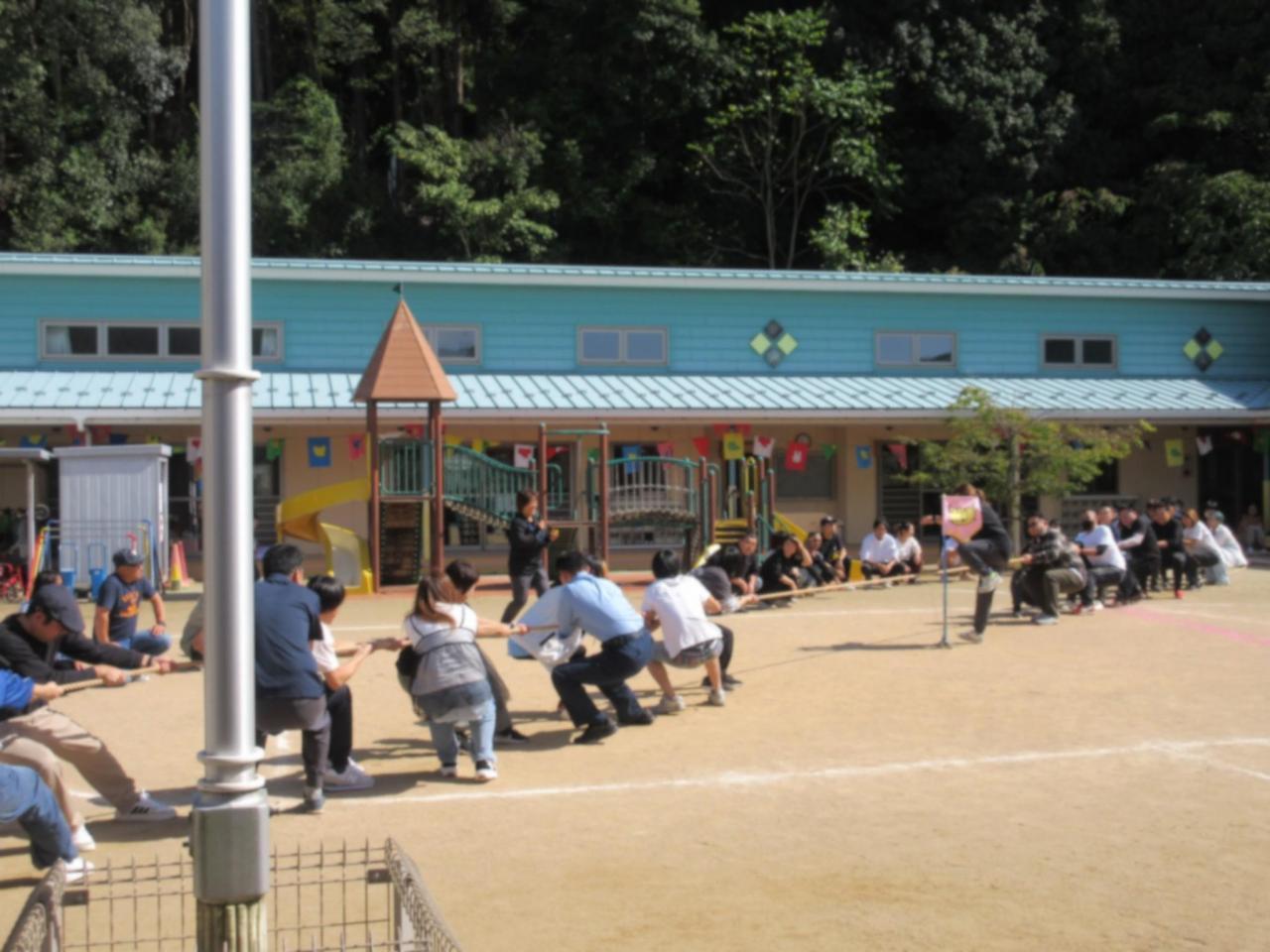 きりん組・くま組 混合チームで綱引きです😄
