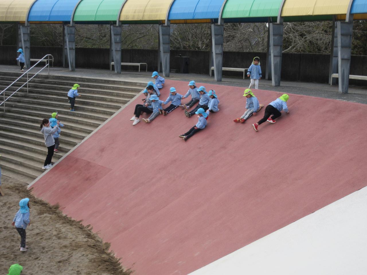 ローラー滑り台、初めて滑ってちょっぴり怖かった子どももいましたが、みんな楽しくて何回も滑っていました😄
