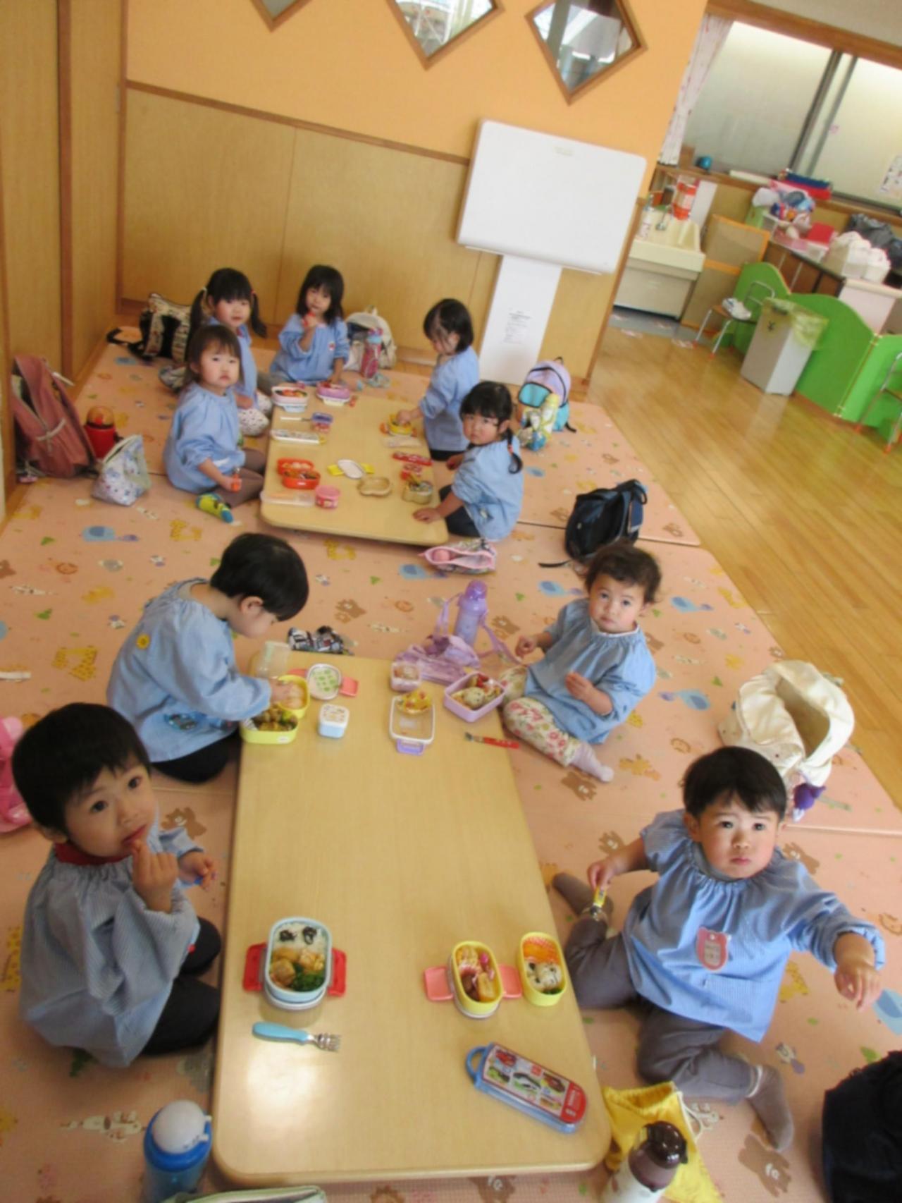 ひよこ・こあら・あひる組はこども園で、ぱんだ・きりん・くま組はへそ公園でいただきました😄