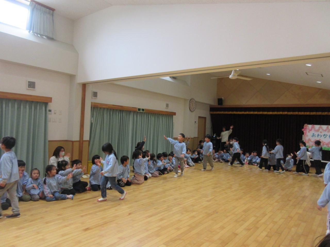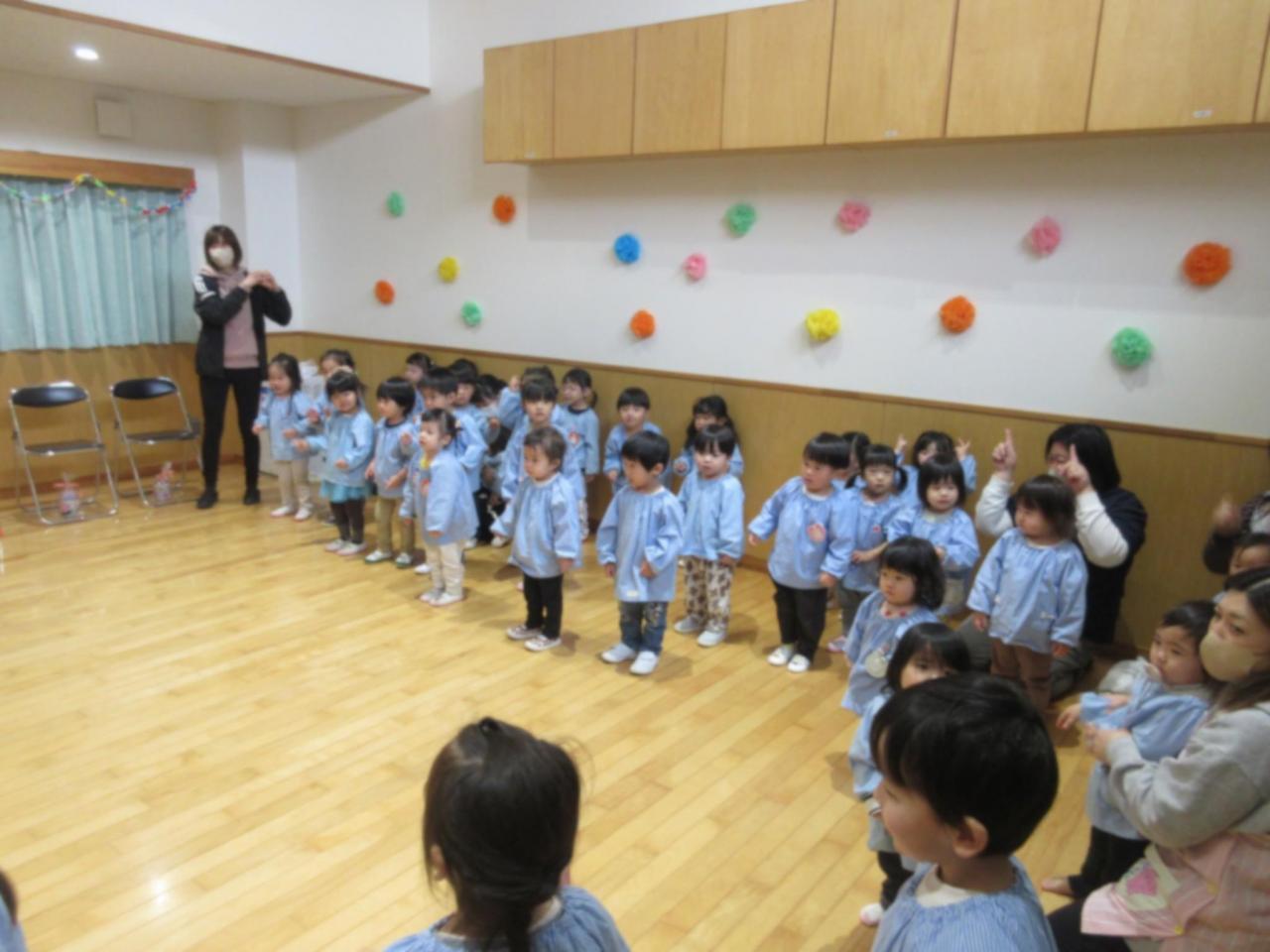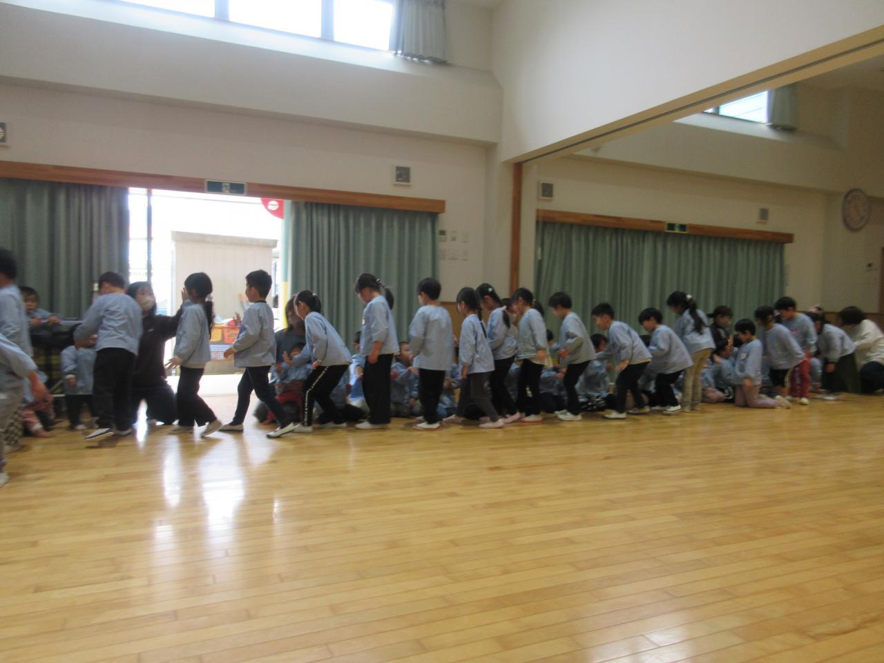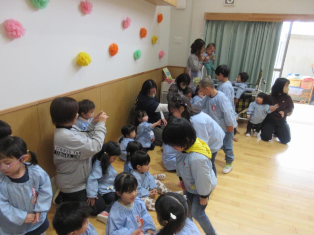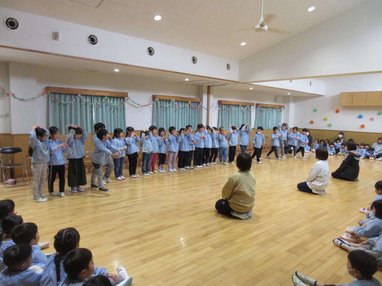 くま組が、お話あそびで踊った ♪赤鬼と青鬼のタンゴ♪ にあわせて、みんなで踊ったよ😄