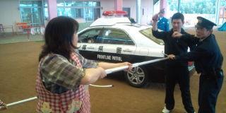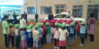 今日は防犯訓練をしました。三木警察署の全面協力により、不審者が侵入した場合の対処について訓練をしました。保育園はオートロックになっているので、侵入される事は少ないと思いますが、万が一入られた場合の為に真剣に訓練しました。実際に不審者に扮した警察官の方が侵入し、警察署への通報、警察官による犯人逮捕までを行いました。また訓練後、兵庫県警より子ども達に「交通ルールを守る事」、「知らない人に声をかけられても絶対について行かない事」、「お父さん、お母さん、先生の言うことを、ちゃんときく事」の3つのお約束のメッセージを聞き、実際にパトカーや白バイを見学したり、乗せていただいたりしました。やっぱり子ども達にとってパトカーや白バイ、警察官はヒーローみたいて、目を輝かせていました。あってはならない事ですが、万が一に備えて、子ども達の「安全、安心」に対して、もう一度しっかりと日頃からの心構えと訓練が必要だと再認識させられた訓練になりました。保護者の皆さんにも防犯上、ご不便をおかけする場合がありますが、ご理