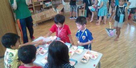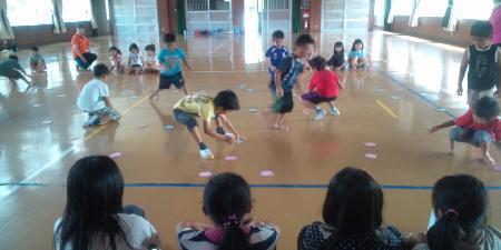 今日は、アフタースクールのある志染小学校へアフタースクールのお兄さん、お姉さんからの招待を受けて行ってきました。体育館で「鬼ごっこ」や「カードめくり」などのゲームをして、アフタースクールのお部屋で「お店屋さんごっこ」をしました。子ども達も小学校のお兄さん、お姉さんも最初は遠慮がちに関わっていましたが、ゲームを通して仲良く関わる事ができました。お店屋さんの商品も「ヨーヨー」や「お弁当」や「ブラバン」など、アフタースクールのお兄さん、お姉さんが一生懸命作ってくれたそうです。2時間程度でしたが、お互いに楽しい時間を過ごす事ができました。また、小学生の姿を身近に感じられた事で就学にも意識ができたんじゃないかと思います。こうした交流を通して、小学校との連携もとりながらスムーズに就学できるようになったらいいですね。