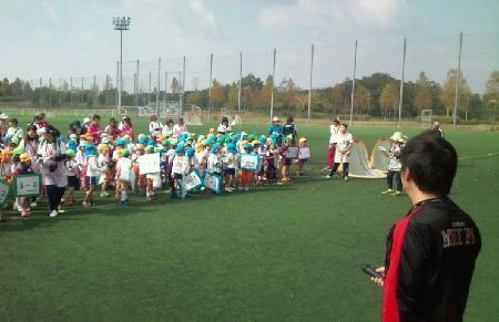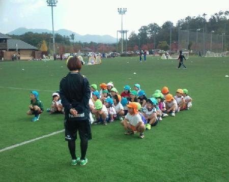 新聞紙面をご覧になった方もおられると思いますが、総合防災公園サッカー場で、三木市内保育園・保育所14園の年長児約300名が参加したサッカー教室が行われました。あけぼの保育園からは、ゆりぐみのお友だちが参加しました。女子サッカーからINAC神戸、フットサルからDEUCAN神戸、また地元三木市サッカー協会のコーチの皆さんに教えていただきました。