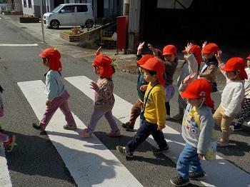 横断歩道もしっかり手をあげて
