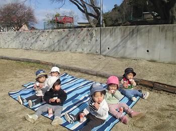 お外でおやつを食べました(^^♪
