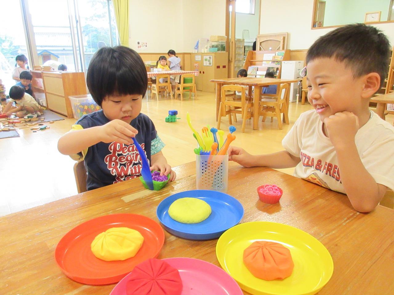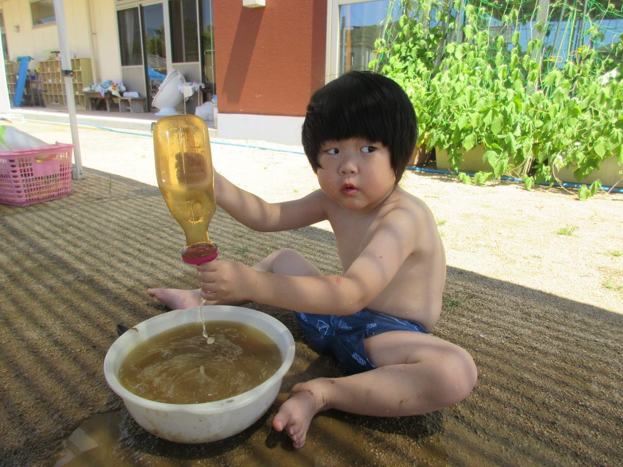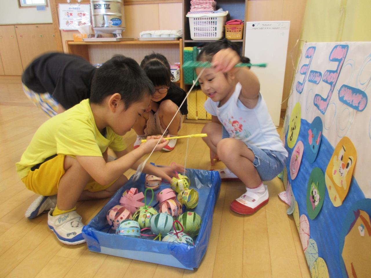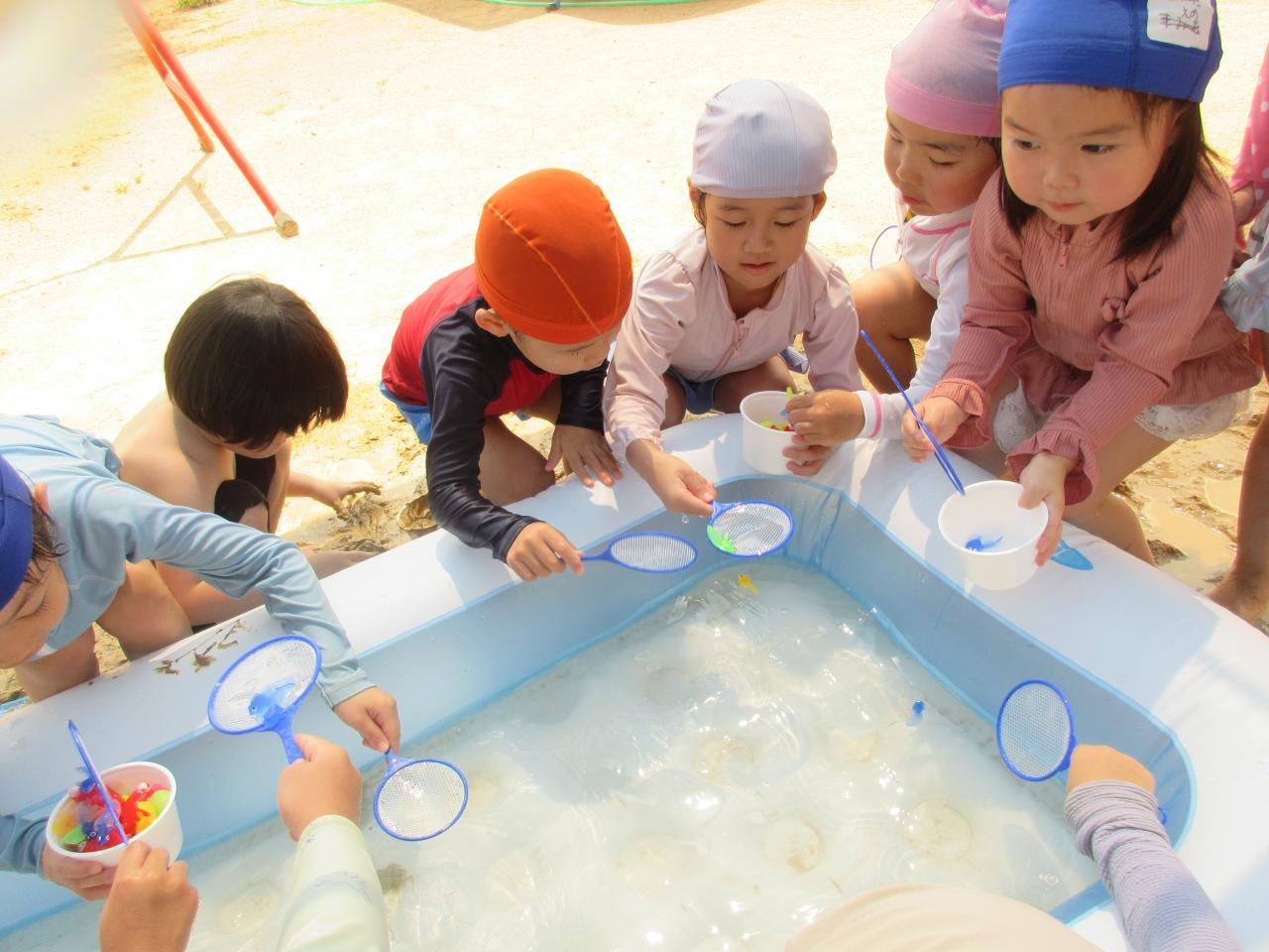 泥遊びや、金魚すくい、あさがおを使って色水をしたり楽しみました✨