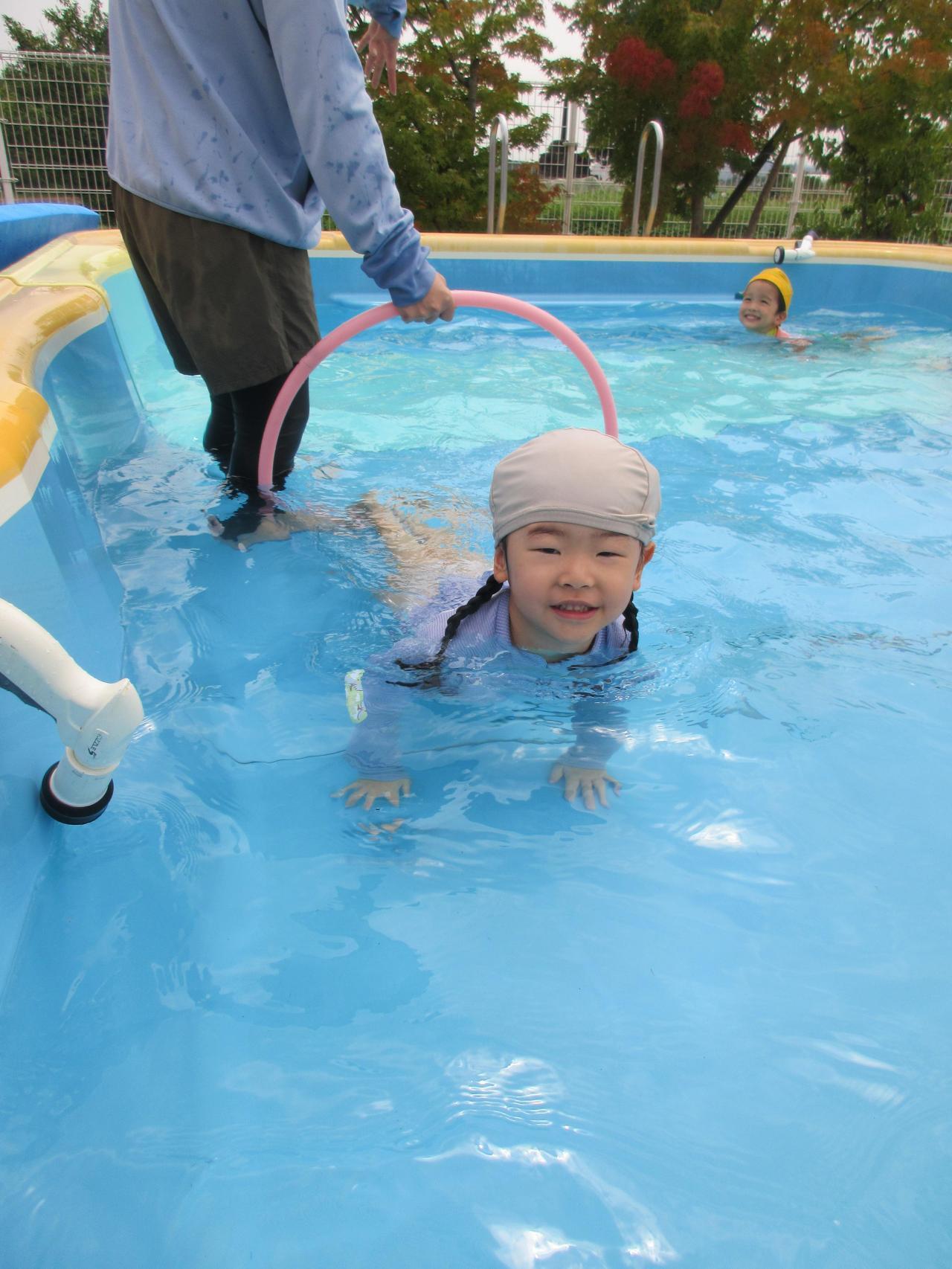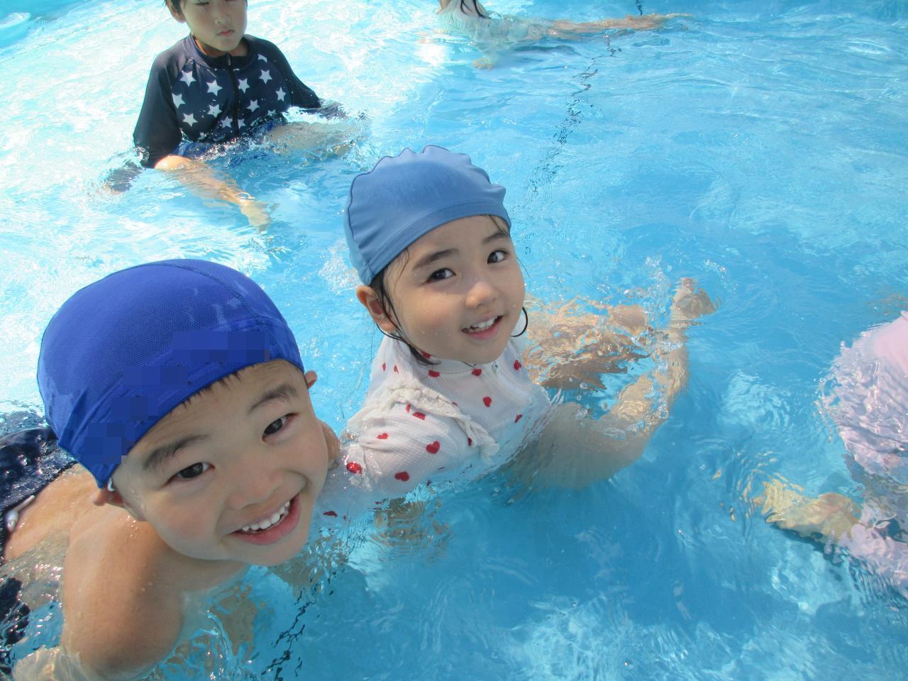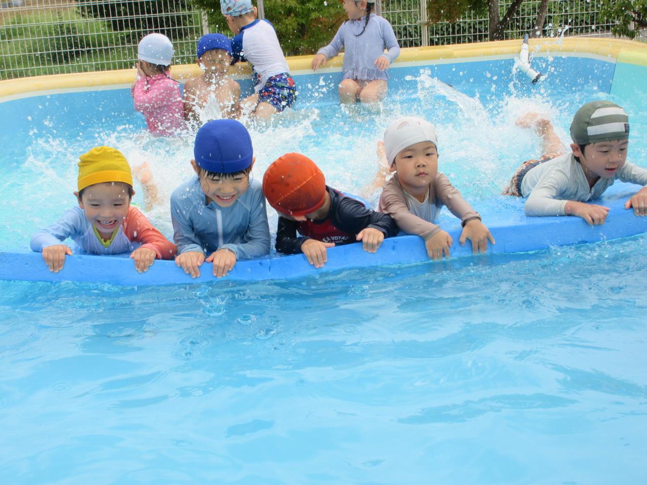 プールに入ると「つめた~!!」と大はしゃぎ❗宝石拾いやビート板に乗って遊んだり、みんな大好き滑り台も滑ってたくさん楽しみました🤩