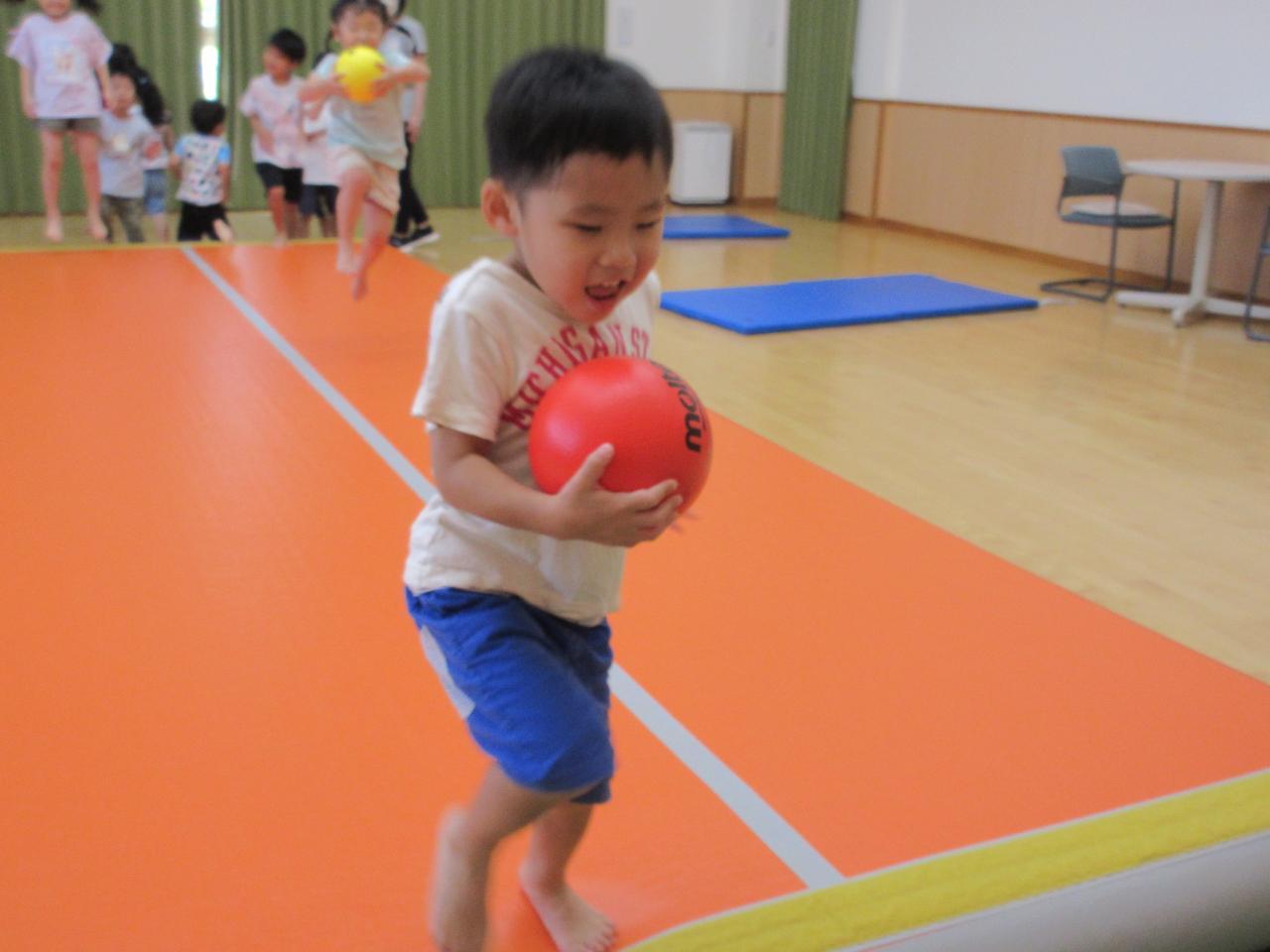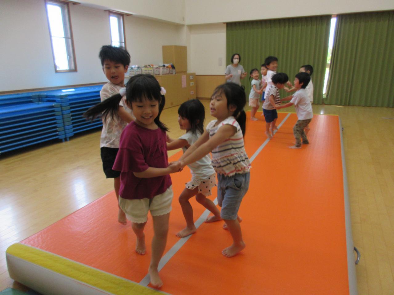 遊戯室では、エアマットに大喜びでぴょんぴょんジャンプしたり、お友だちと手を繋いでジャンプして楽しみました✨