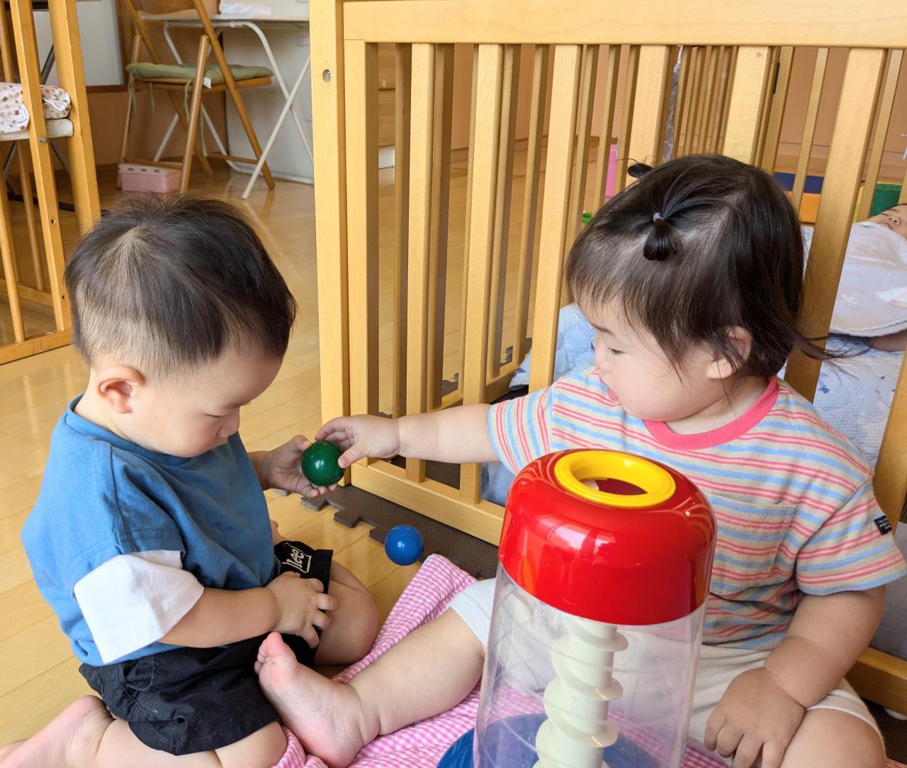 「どうぞ」や「ちょうだい」をしたり、「ばいばい」をし合ったりしている姿は、とても可愛いです💕