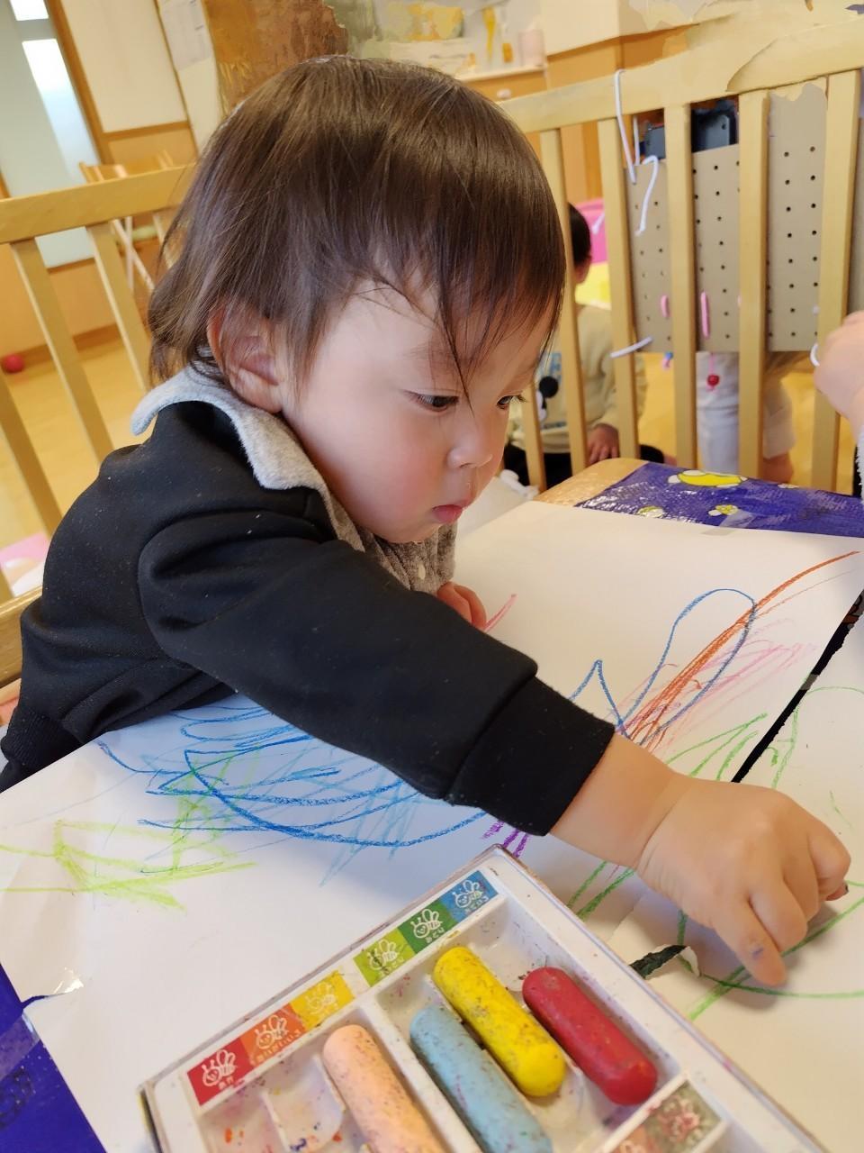 お友達がお絵描きしていると、「自分も描きたい!!」と集まってきて、お絵描きはみんな大好きな様子です😌