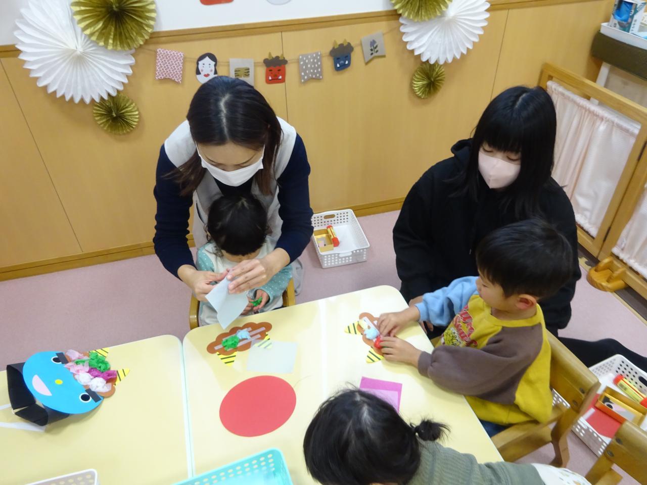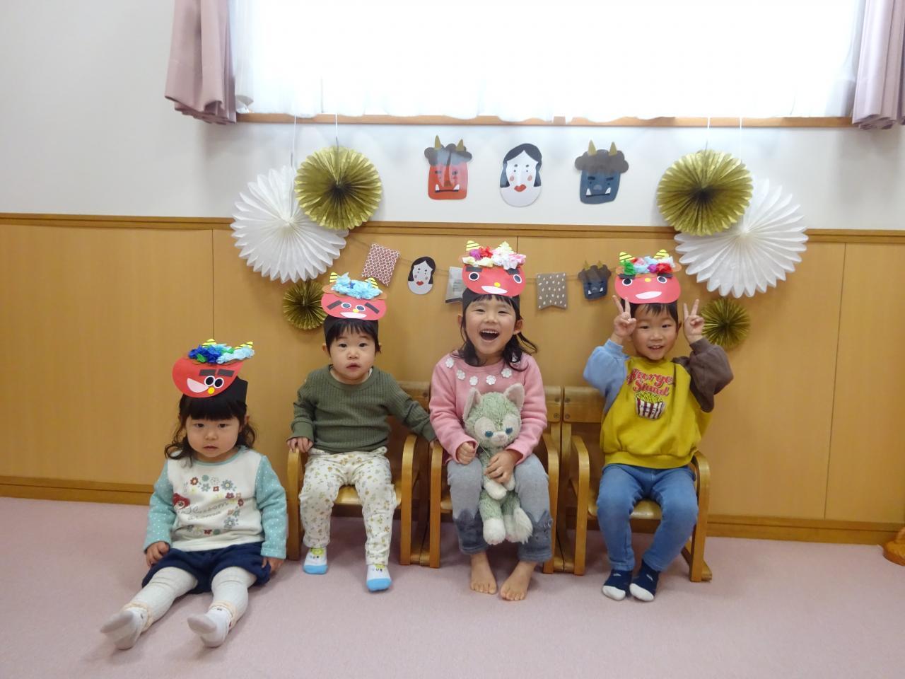 親子で鬼のお面を作ったり、豆まきを楽しみました😄お花紙をぎゅっぎゅっと丸めたり、顔のパーツを貼って…個性豊かな 鬼が完成しました😆