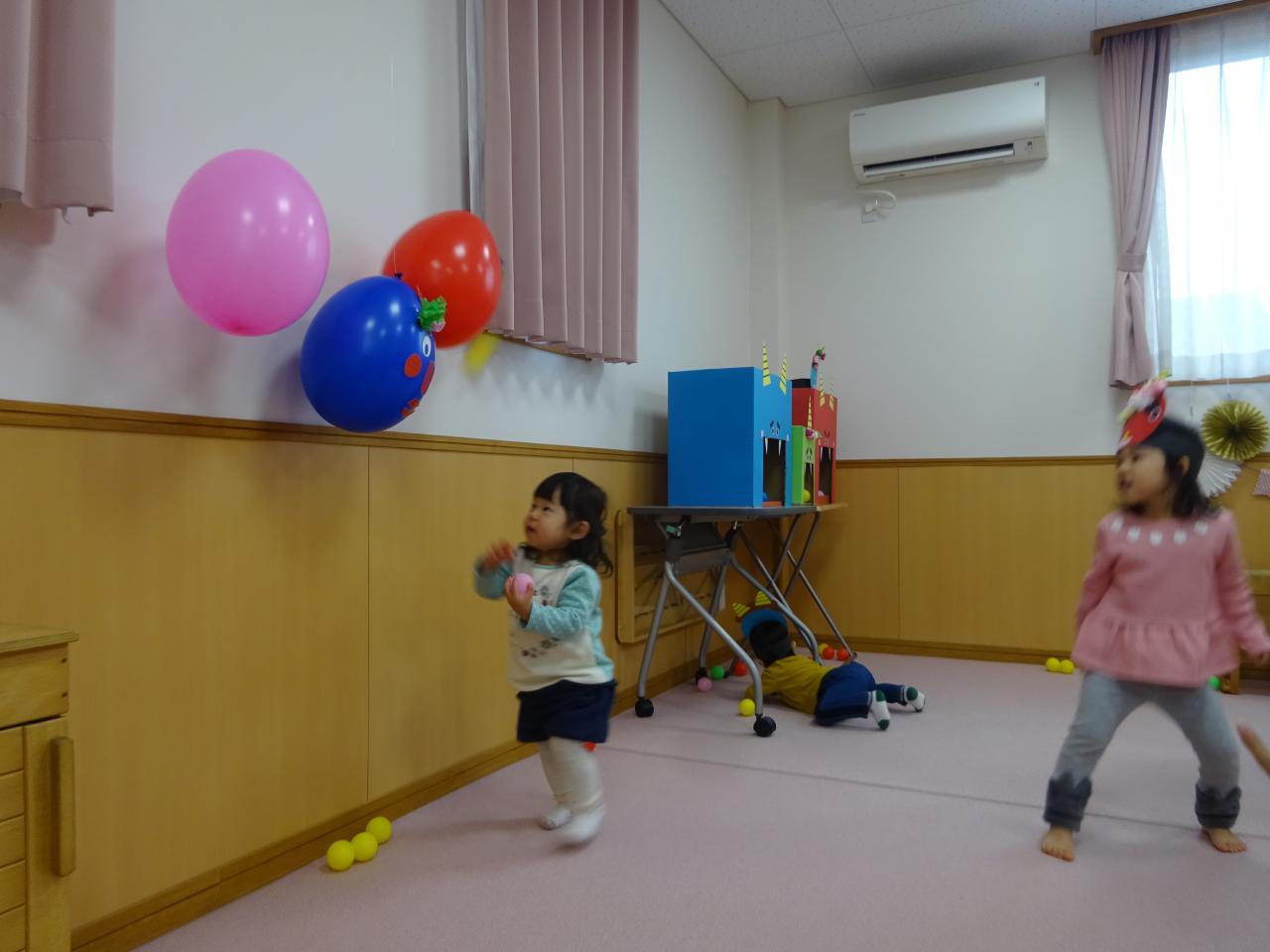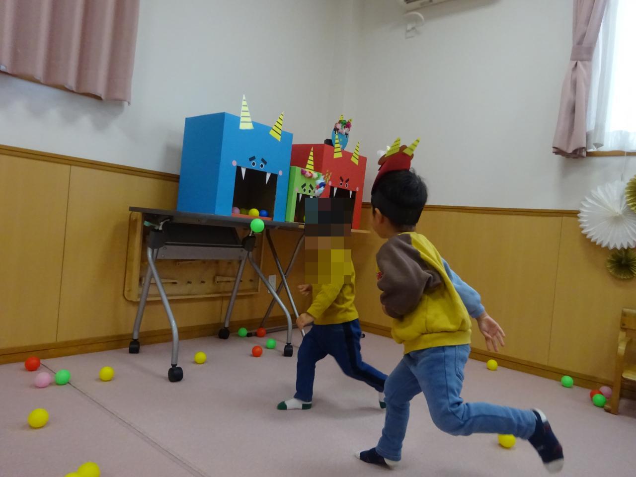 箱オニや風船オニに向かって、みんな力強く豆(ボール)を投げてくれました💪✨