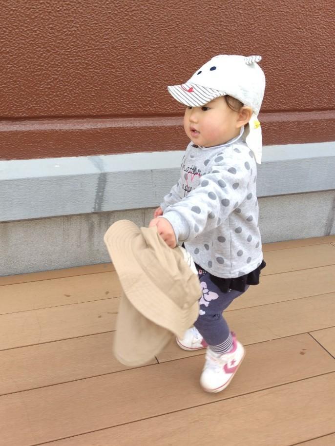 お友達の帽子を拾って、渡してあげようとする姿もみられました。自分のもの、友達のものが分かるようになってきています。