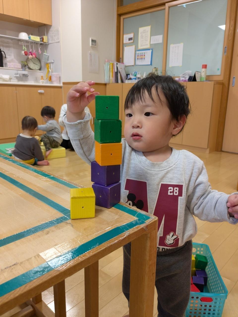 手指も発達してきて、指先で物が上手につまめるようになってきたので、積み木も高く積んでいます🤩