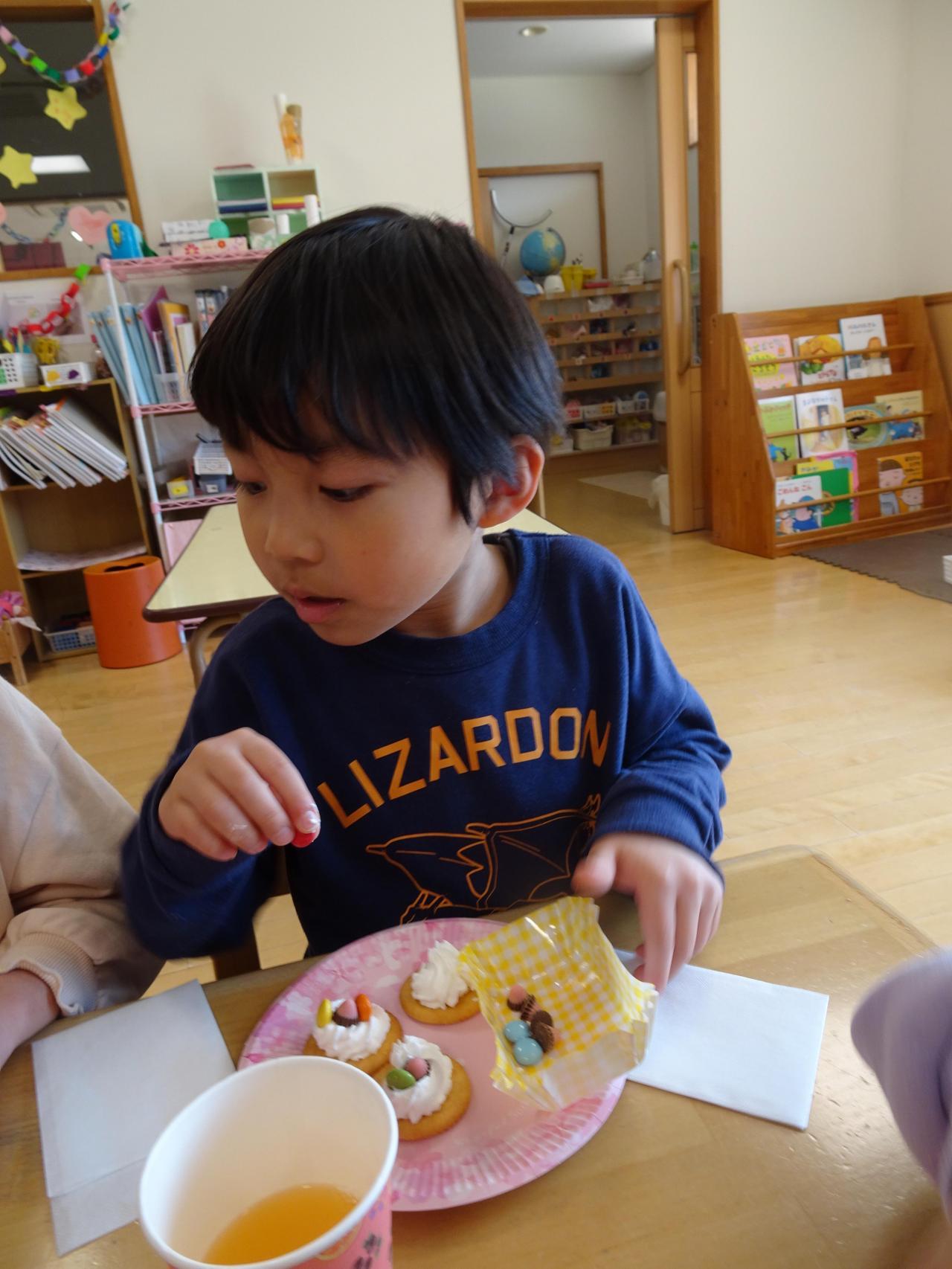 お楽しみはまだまだ続きます💕お部屋に帰ってみんなでジュースを飲んだりクッキーにお菓子をトッピングしてみんなで一緒に食べましたよ😋ニコニコ笑顔がたくさん見られました🥰
