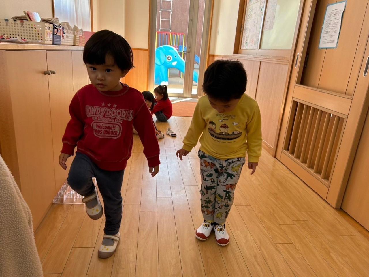 初めは緊張して幼児クラスに入ると、カチコチッと固まっている様子も見られましたが、お兄さんお姉さん達に優しく声を掛けてもらいながら、慣れていき少しずつ遊びに入っていく子ども達でした!幼児クラスへの進級が待ち遠しいですね!