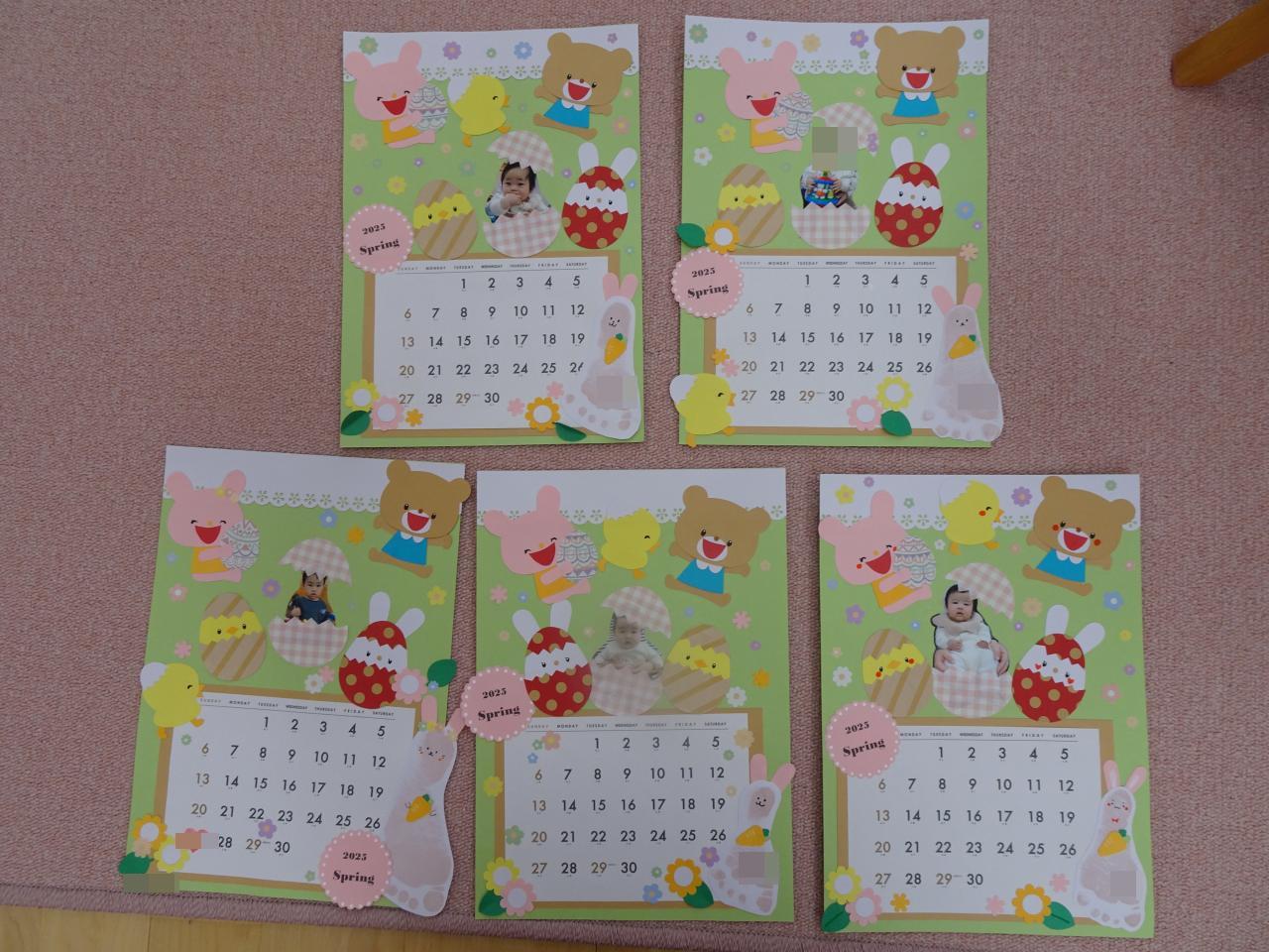 今月の足型アートは「うさぎ🐰」でした🥰0歳の赤ちゃんたちも上手に足型をとらせてくれました👏いろんな大きさの足型アートが見られるカレンダーづくりは癒しの空間です🥰
